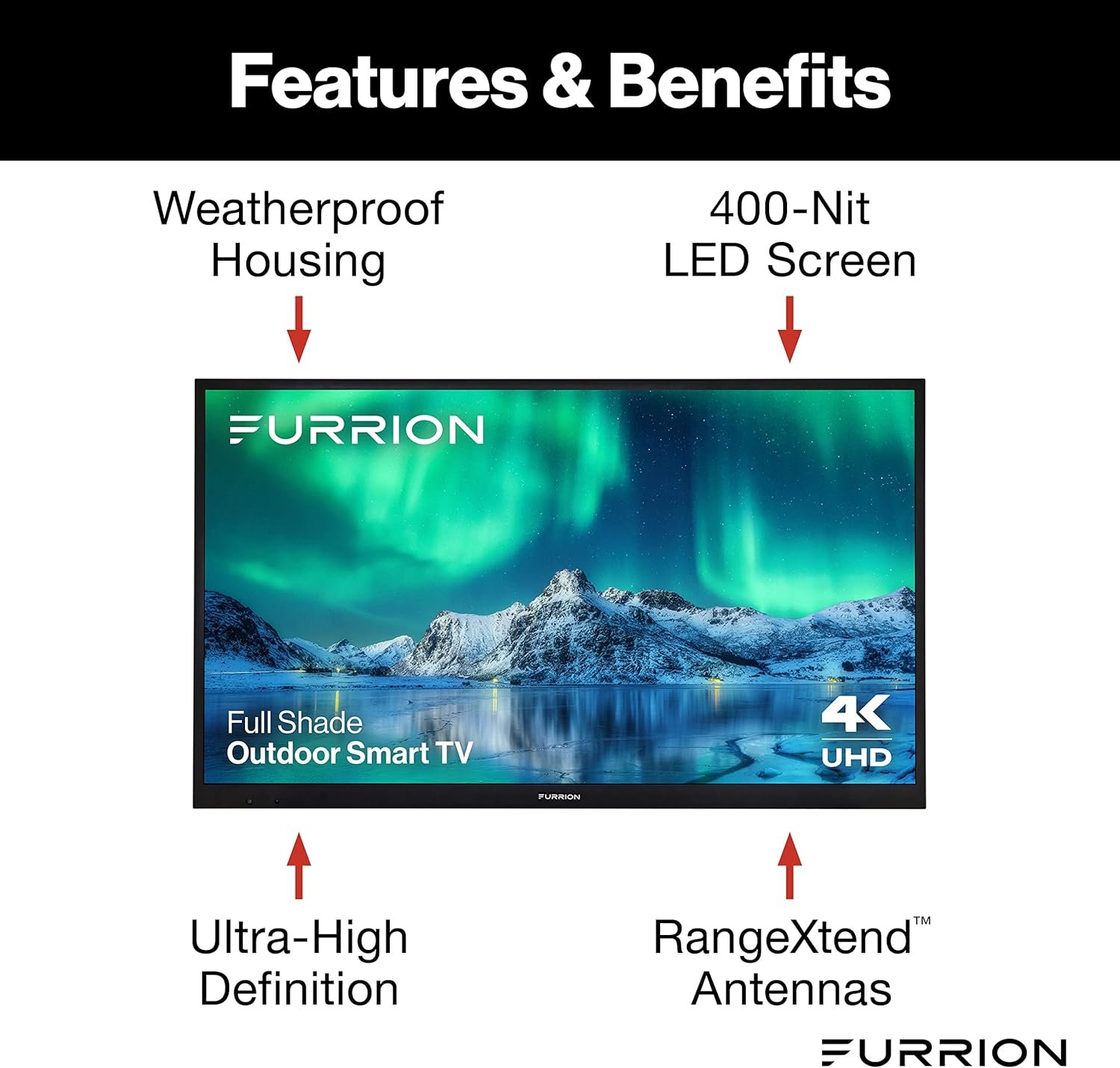 STRONG SIGNAL – This smart outdoor TV also comes equipped with Furrion’s RangeXtend technology, external antennas that boost the signal and ensure consistent WiFi reception