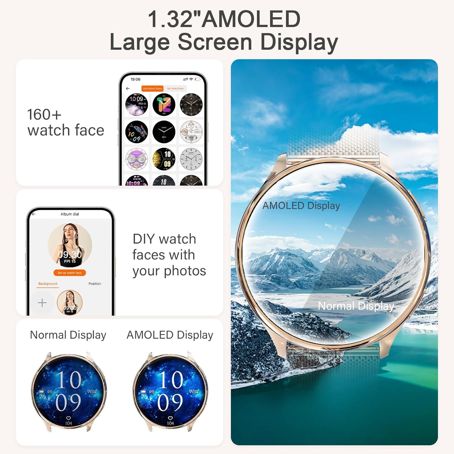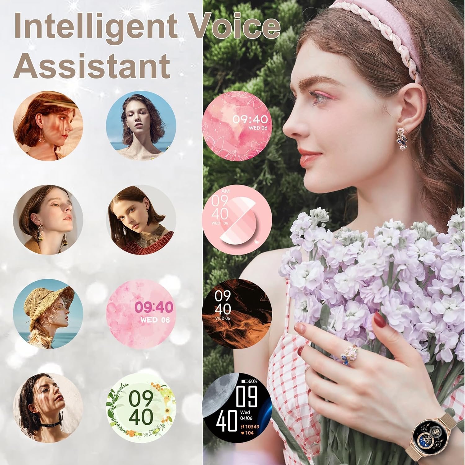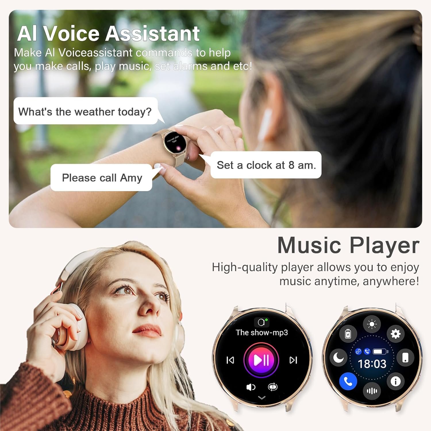 【Unique AMOLED Screen】Smart watch for women 390*390 pixels high-resolution screen made by AMOLED creates a vivid and colorful display.with 200+personalized dials, you can choose any image you want to set as wallpaper for your smart watch for android phones,interpret your exclusive personal romance.