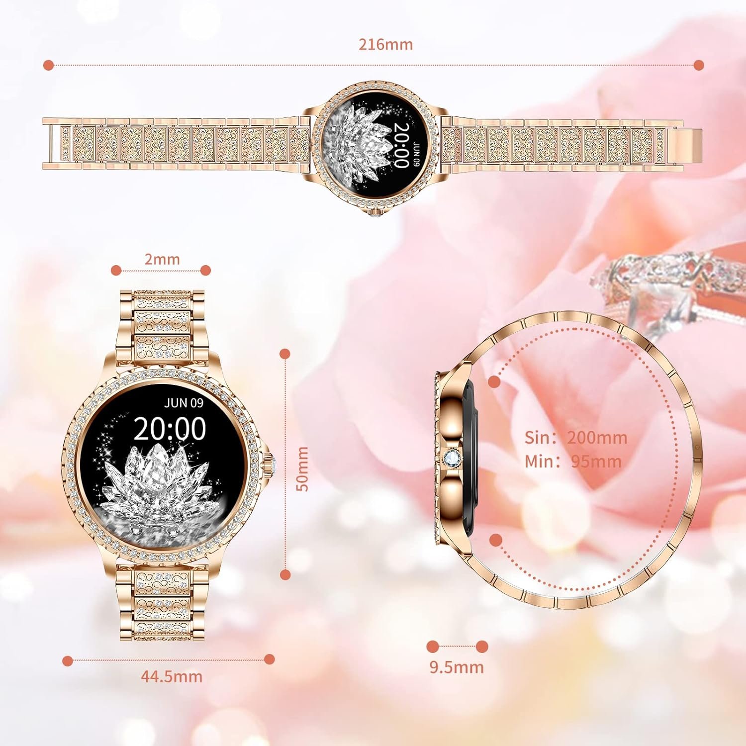 💟[Bling Diamond Rhinestone Smartwatch ]:Exquisite watches with diamond inlay show delicate, shining and noble temperament.There are 146 shining rhinestone diamond in the watch,which is really a combination of sport and fashion.Note:Women Smartwatch is compatible with Android 4.4/iOS6.1 and above.