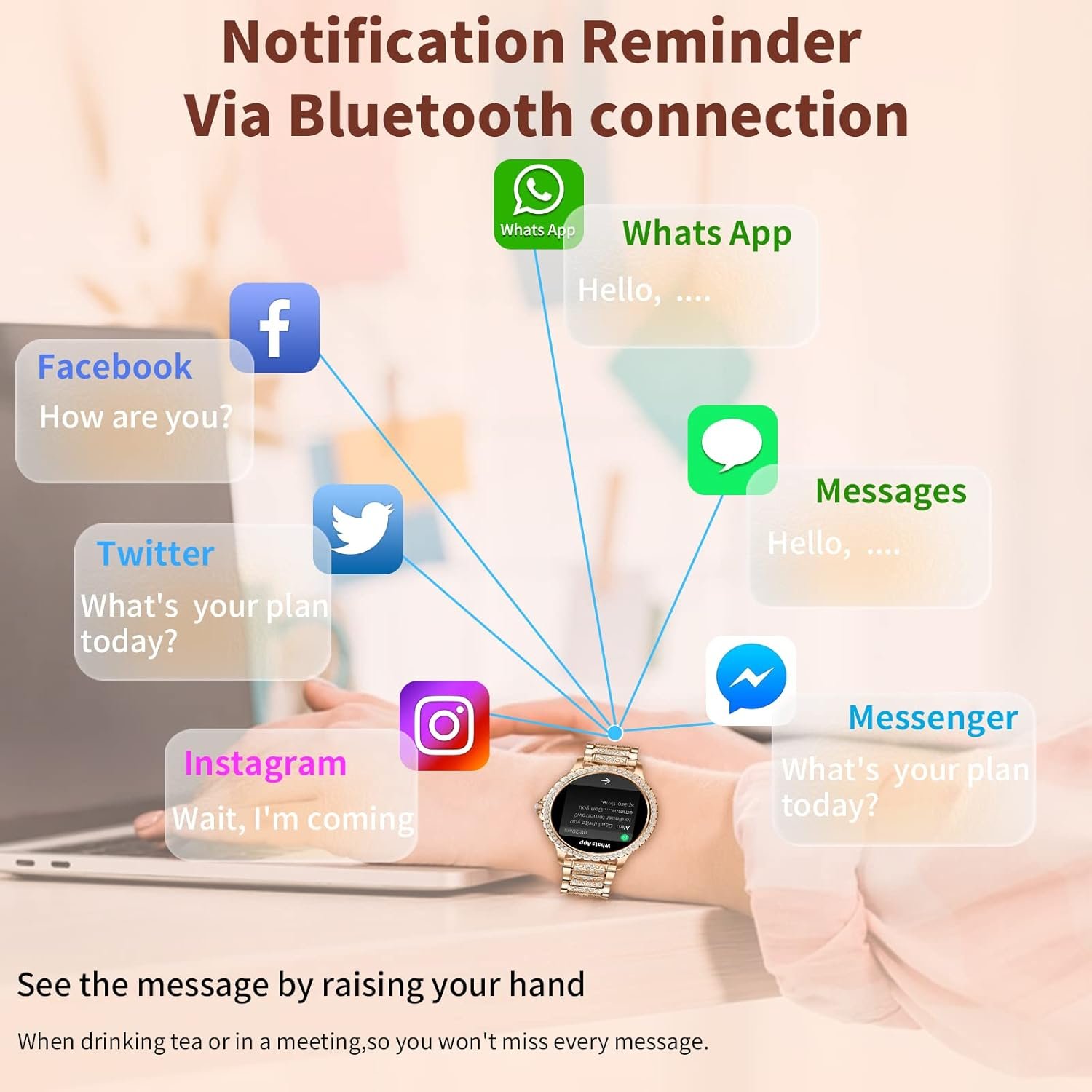 💖[Smart Assistant for Life]:Smart watch for Android iOS phones is compatible with iOS 8.4 and above, Android 4.4 and above.women smartwatch comes with built-in speaker and microphoner, you can make or answer calls from your wristwatch.All notifications will show on your wrist and remind you by vibration (Call Reminder,Facebook, Twitter,WhatsApp)…but you can’t reply directly!