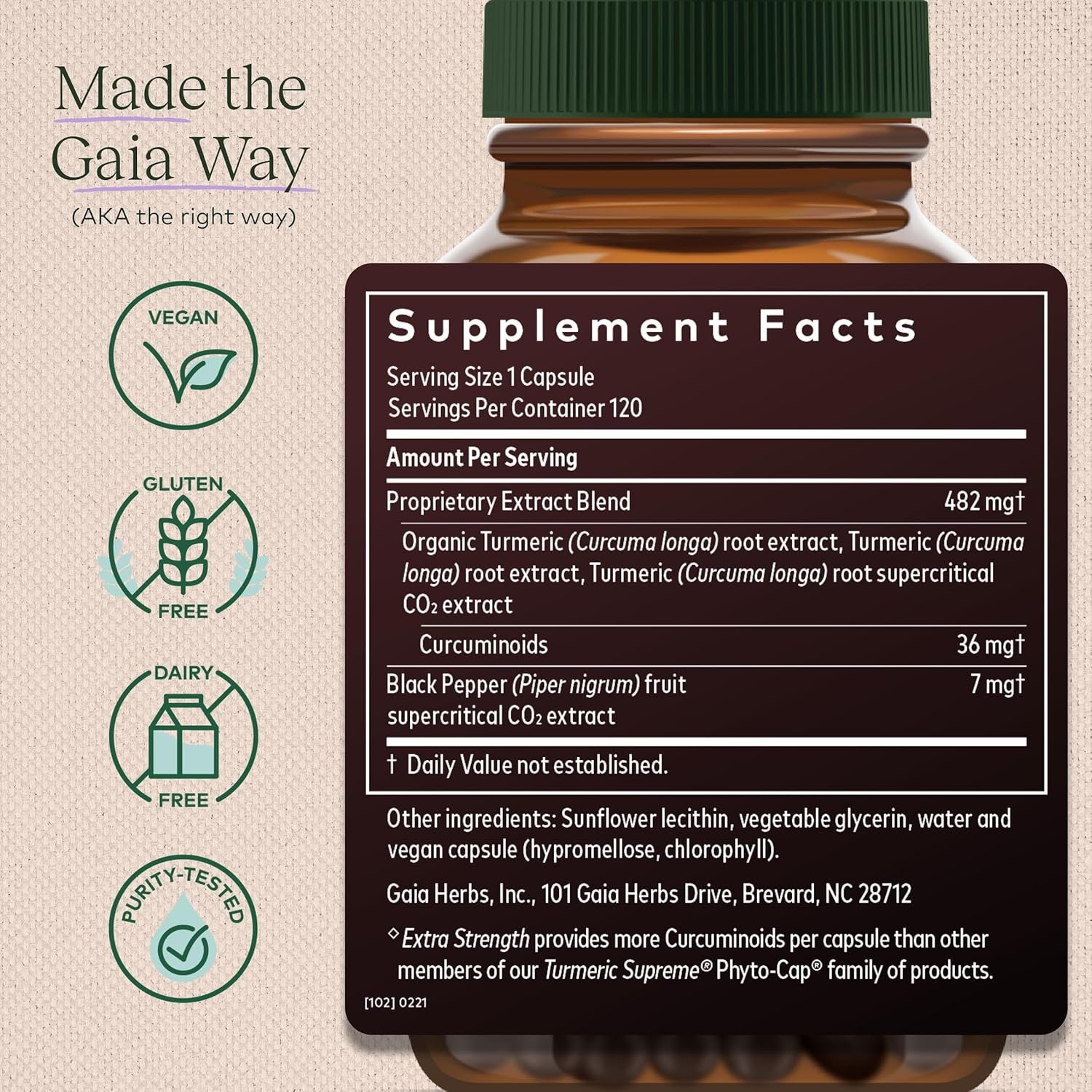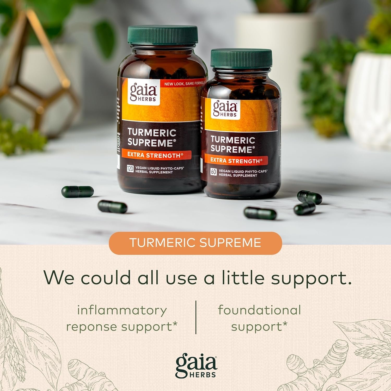 Gaia Herbs Turmeric Supreme Extra Strength – Helps Reduce Occasional Swelling from Normal Wear & Tear – with Turmeric Curcumin & Black Pepper-120 Vegan Liquid Phyto-Capsules(Up to 120-Day Supply)