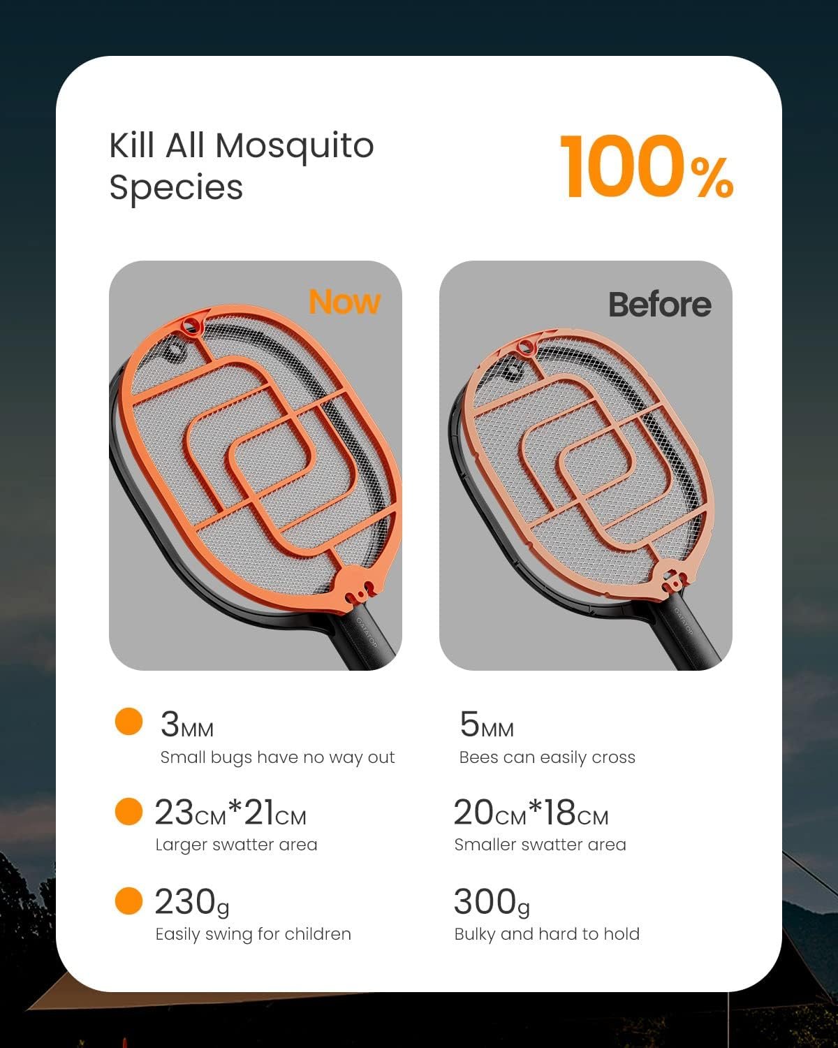 3000V Handheld Pest Control: Gaiatop upgraded encrypted aluminum mesh effectively targets fruit flies, mosquitoes, gnats, bees and other pests; Delivering 3000 volts of power, small insects will be killed in as little as 1 second