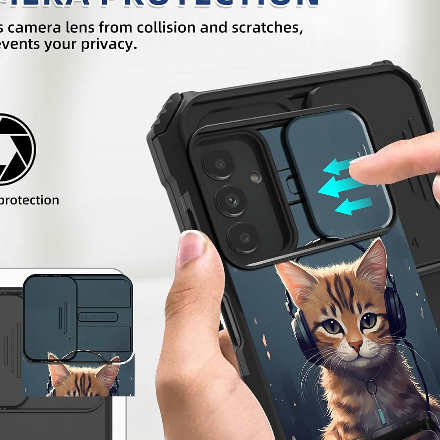✔The case includes a sliding camera cover to protect the lens from damage, you can block your phone camera and protect your privacy when you are not using it. The sliding cover is very easy to slide and not easy to loosen.