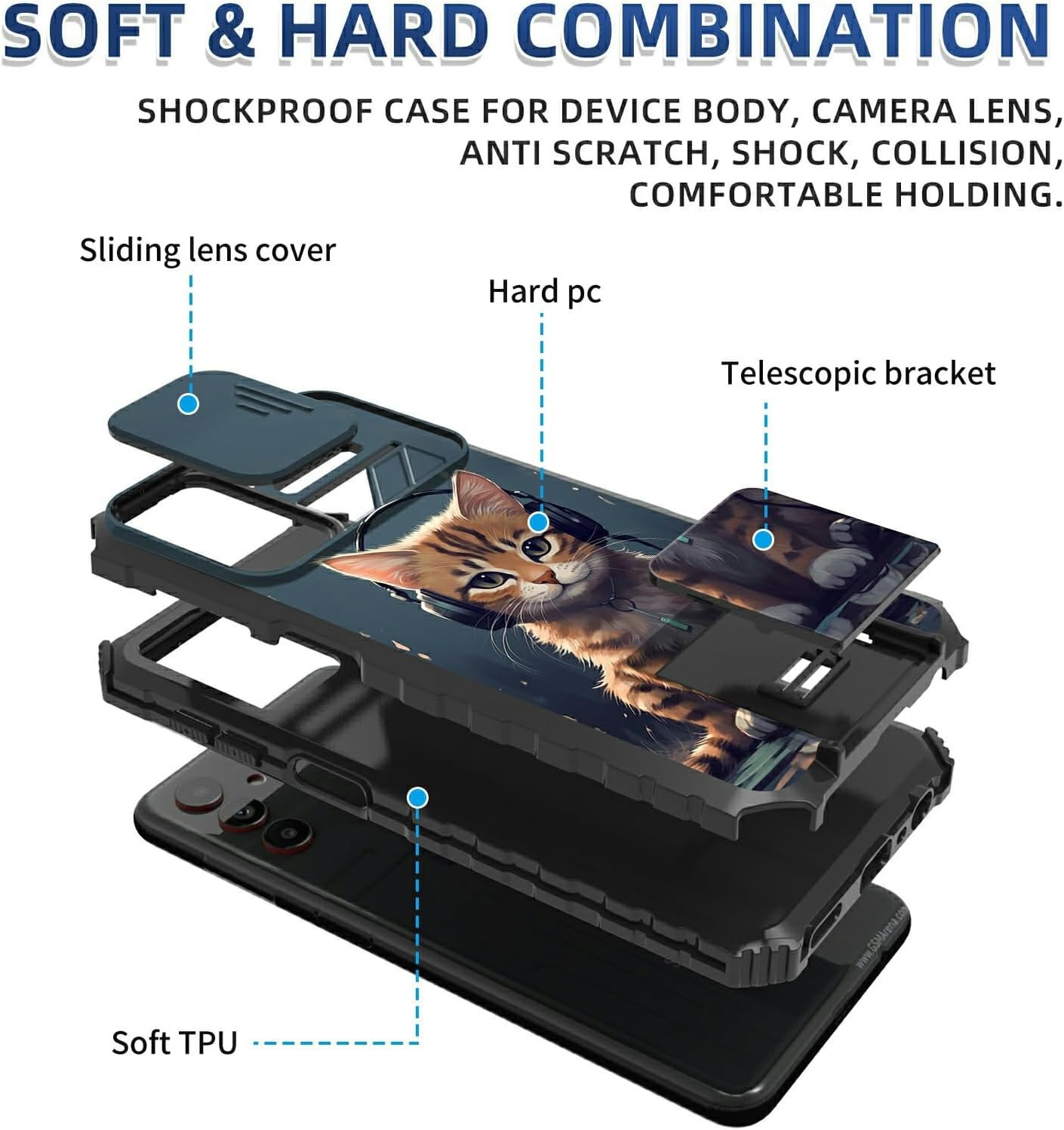 ✔High-Quality Soft TPU + Hard plastic, 2 in 1 hybrid design, and shockproof airbags at four corners , which is effectively protect the screen and camera from drops or shocks.