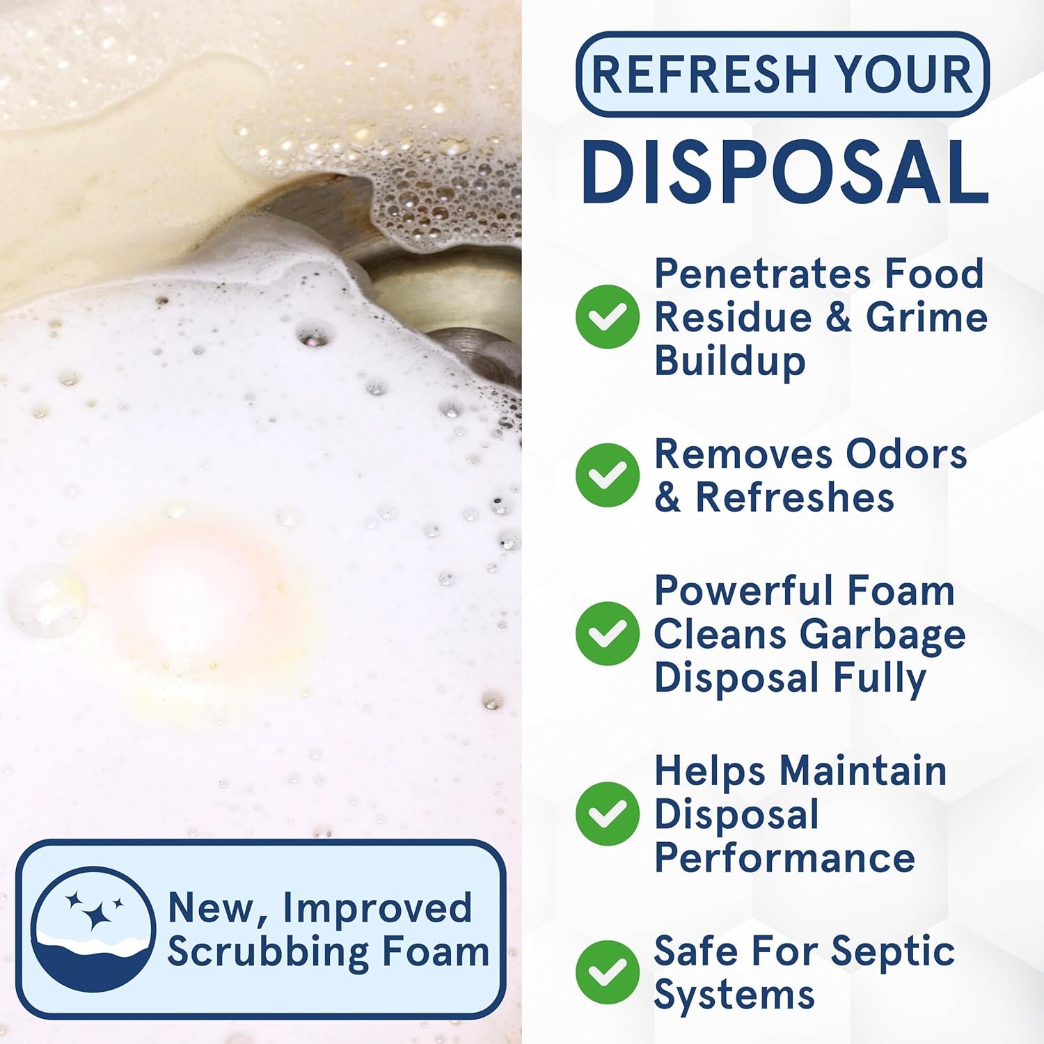 Powerful Disposal Cleaner and Deodorizer: Specifically formulated to quickly and easily dissolve grease, trash, soap scum, and oil for a deep clean 3-4x faster than other, plus it’s also a sink deodorizer Odor! Get spotless results and never worry about clogged pipes again with our 2-in-1 kitchen sink cleaner.