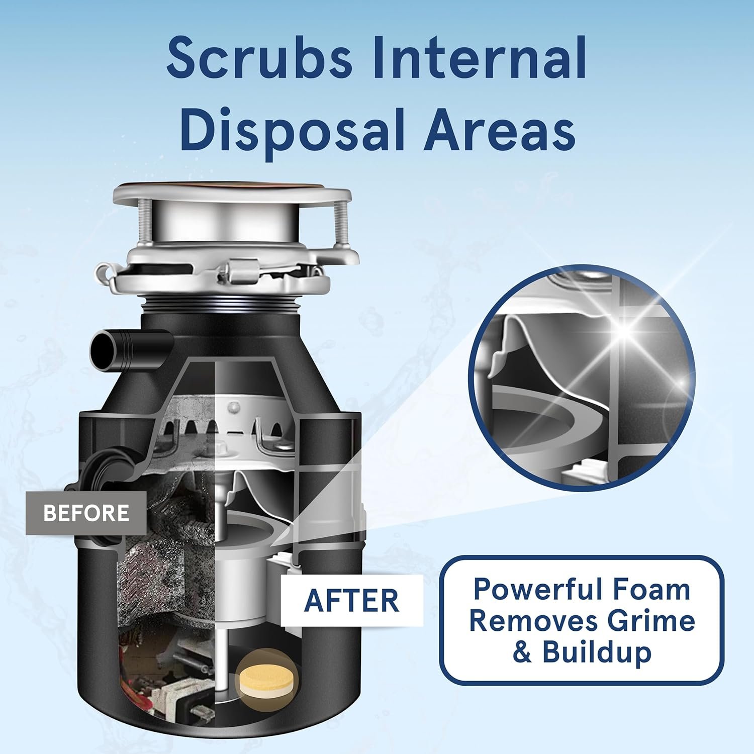 Deep Clean Action: New and improved scrubbing foam removes dirt, grime, and buildup stuck. Our concentrated tablets have greater cleaning power than typical disposable refreshing beads, balls, or pods.