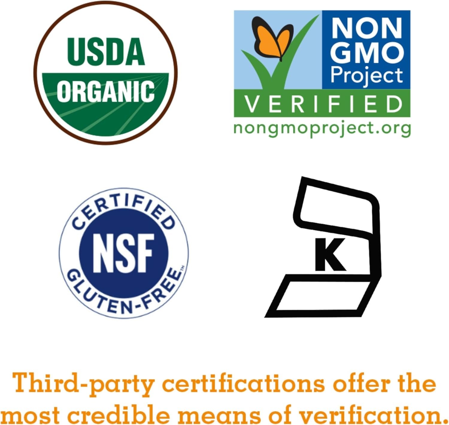 Certified USDA Organic, Non GMO Project Verified, NSF Certified Gluten Free, Vegan & Kosher