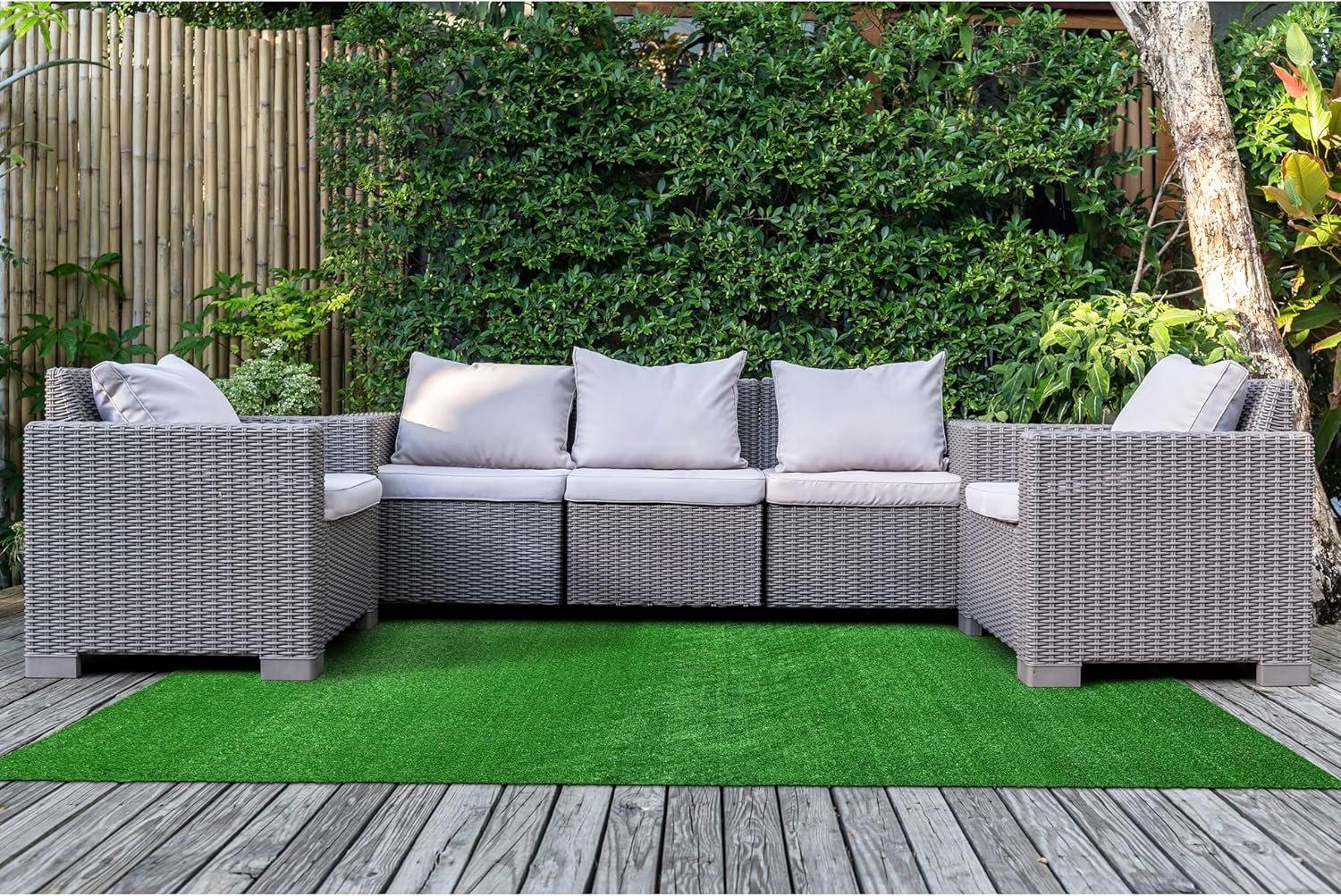 Transform your outdoor and indoor spaces with the Garland Rug Artificial Grass Area Rug in lush green! Perfect for patios, lawns, decks, or even indoor play areas, this durable, low-maintenance rug provides the look of natural grass without the hassle. Made in the USA, it is designed to withstand the elements, offering lasting quality and vibrant color. Whether for outdoor gatherings or creating a green oasis inside, this rug adds a refreshing, eco-friendly touch to any space. Easy to clean and maintain, it’s the perfect solution for any area!