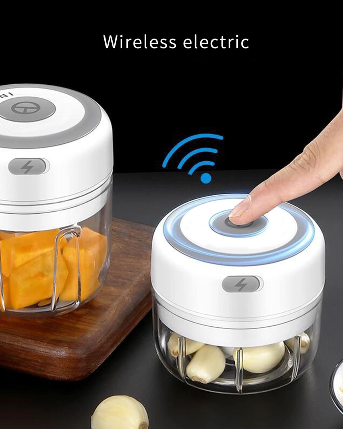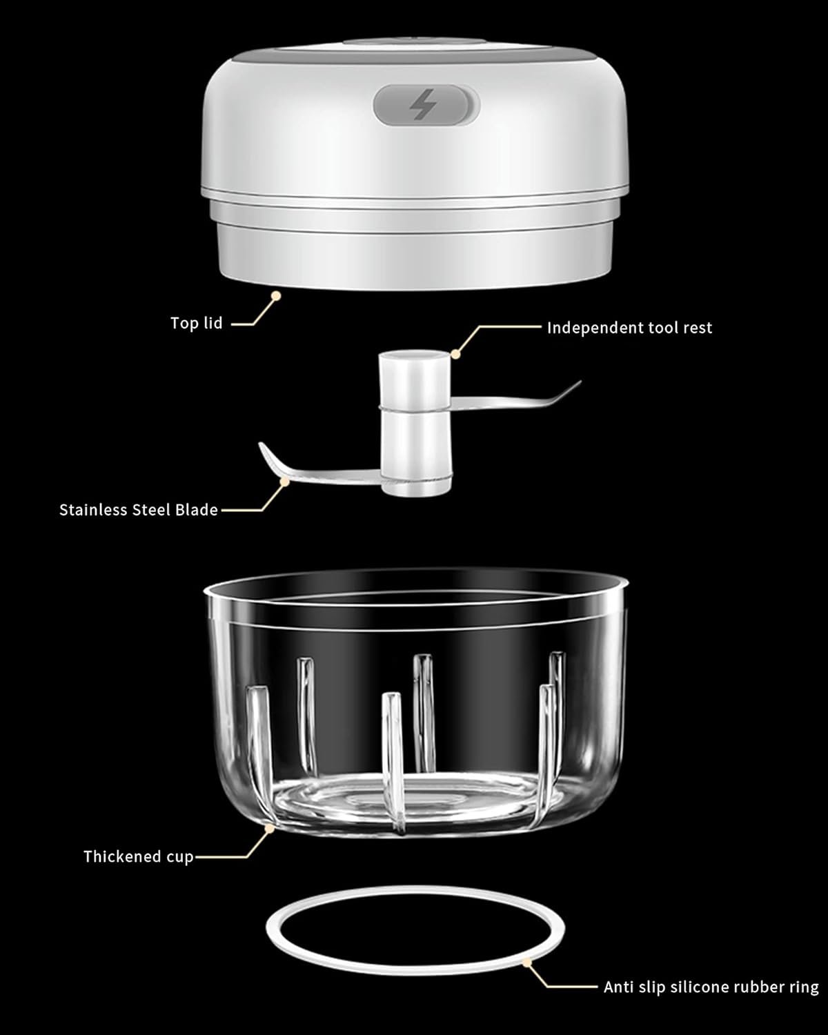 【Premium Material】This small food processor comes with a high quality PC blender cup and a 304 stainless steel blade. The mini garlic mincer is designed with a magnetic safety lock, which ensures that the garlic chopper can not start without closing the cover.