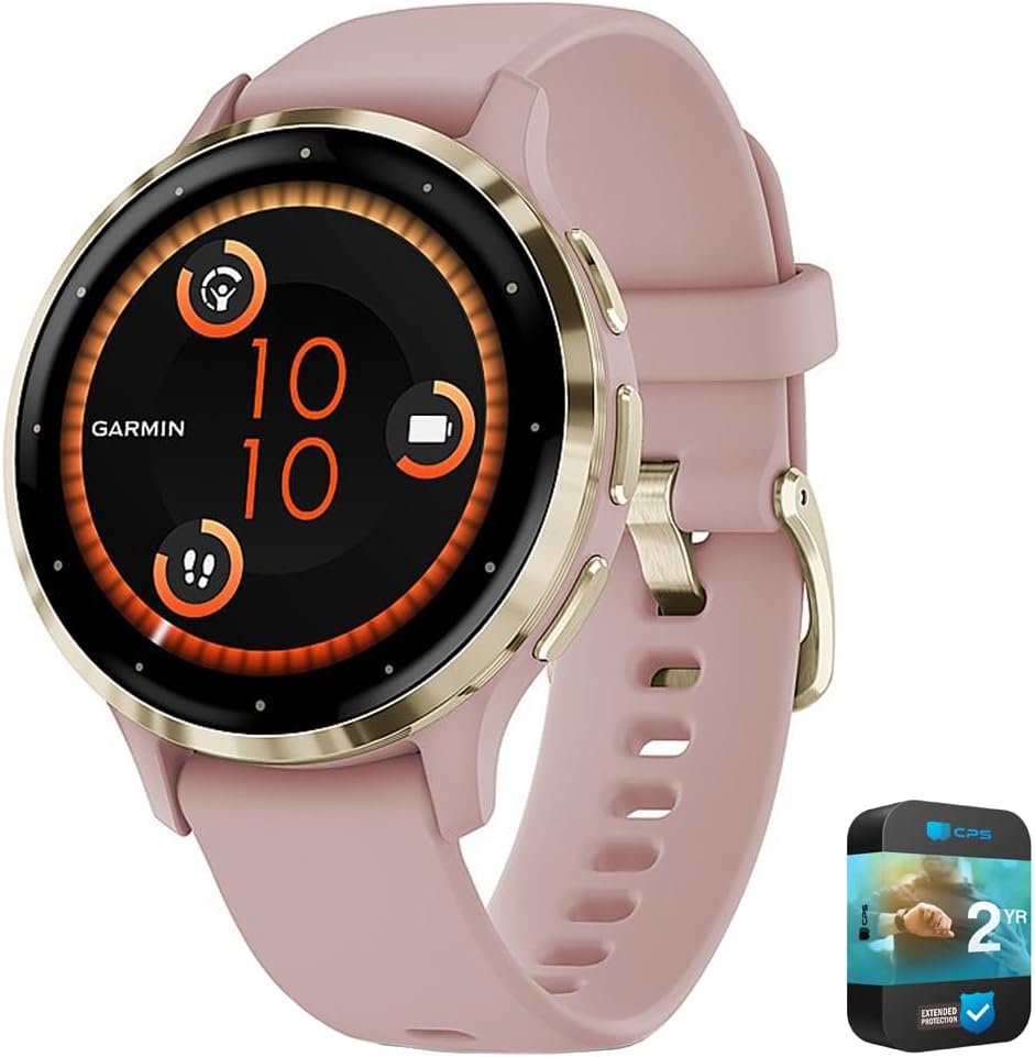 Garmin 010-02785-03 Venu 3S Health Fitness GPS Smartwatch Gold Steel Bezel with Dust Rose Case 41mm2 YR CPS Enhanced Protection Pack