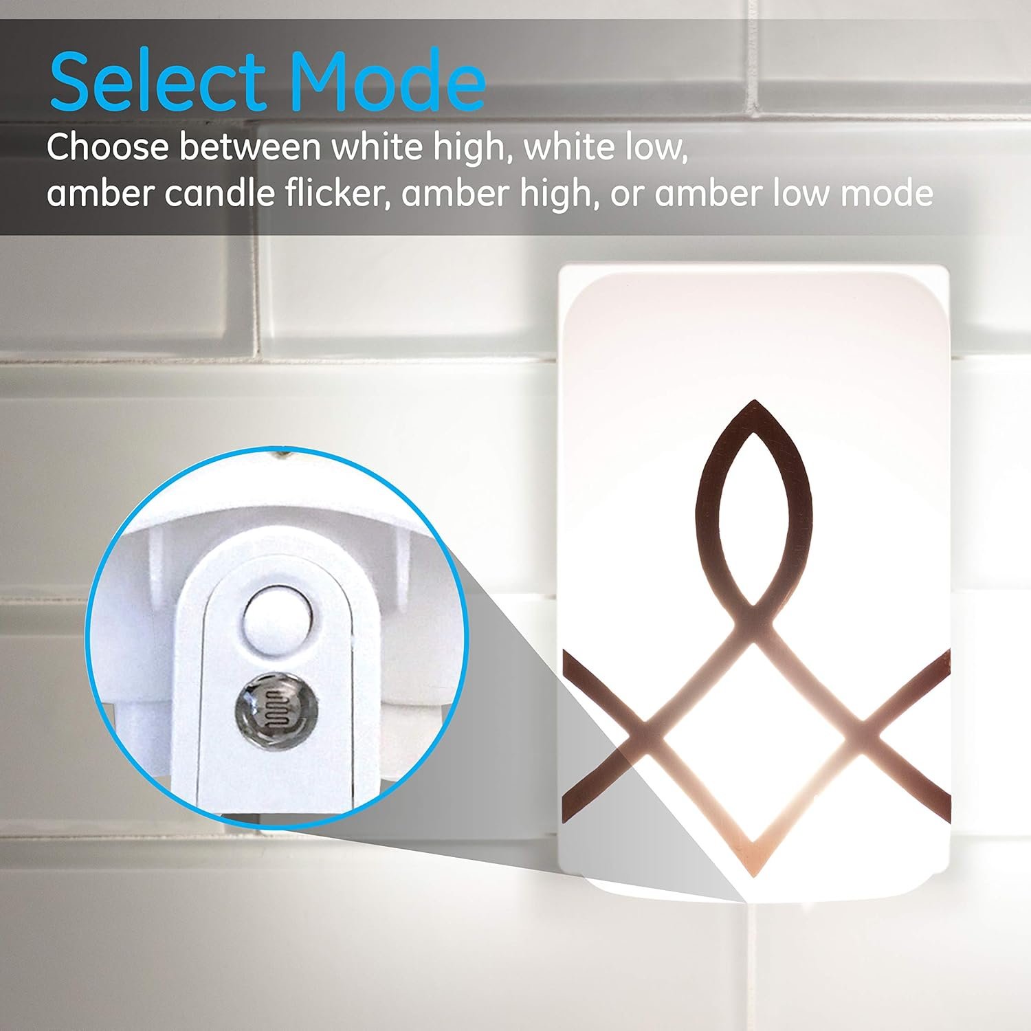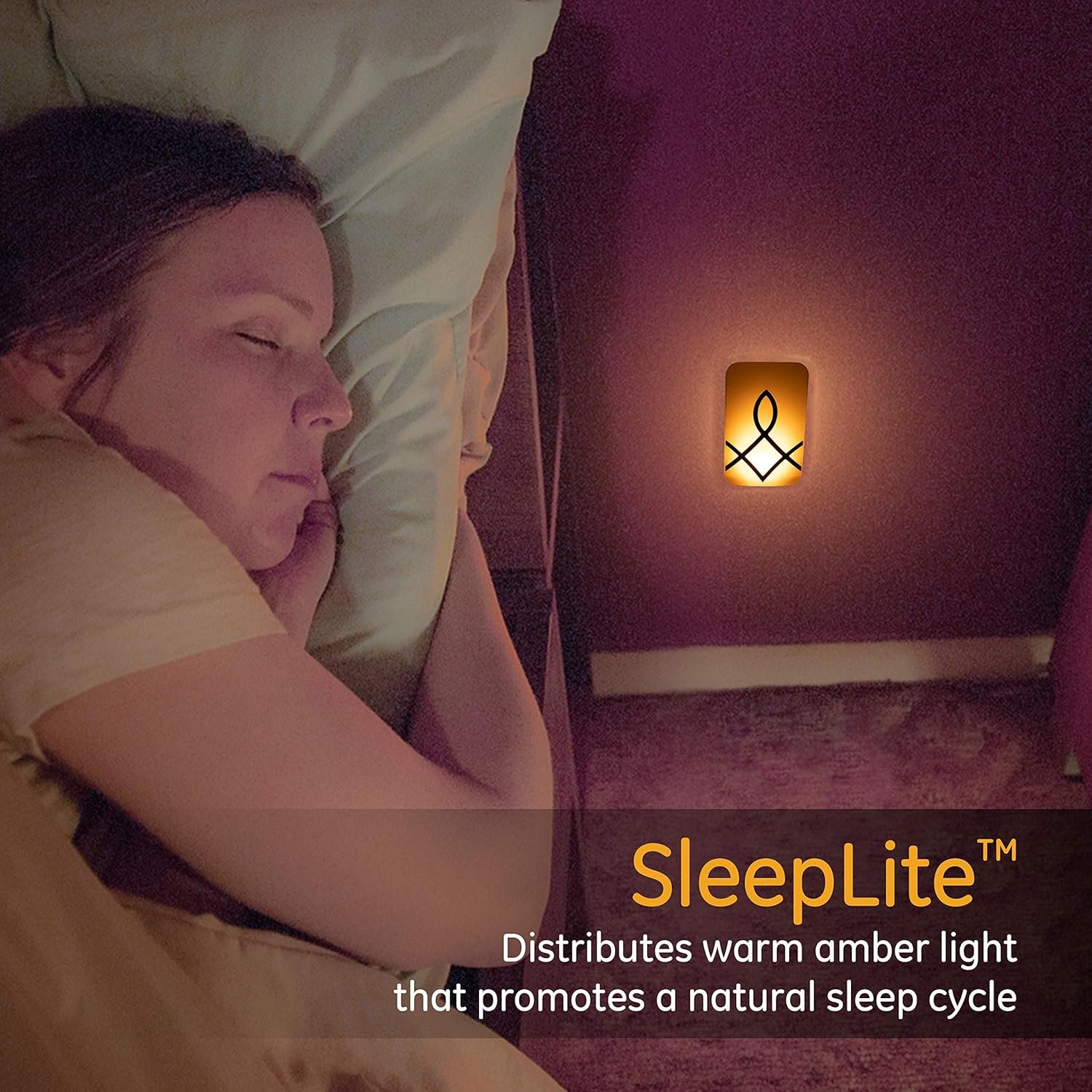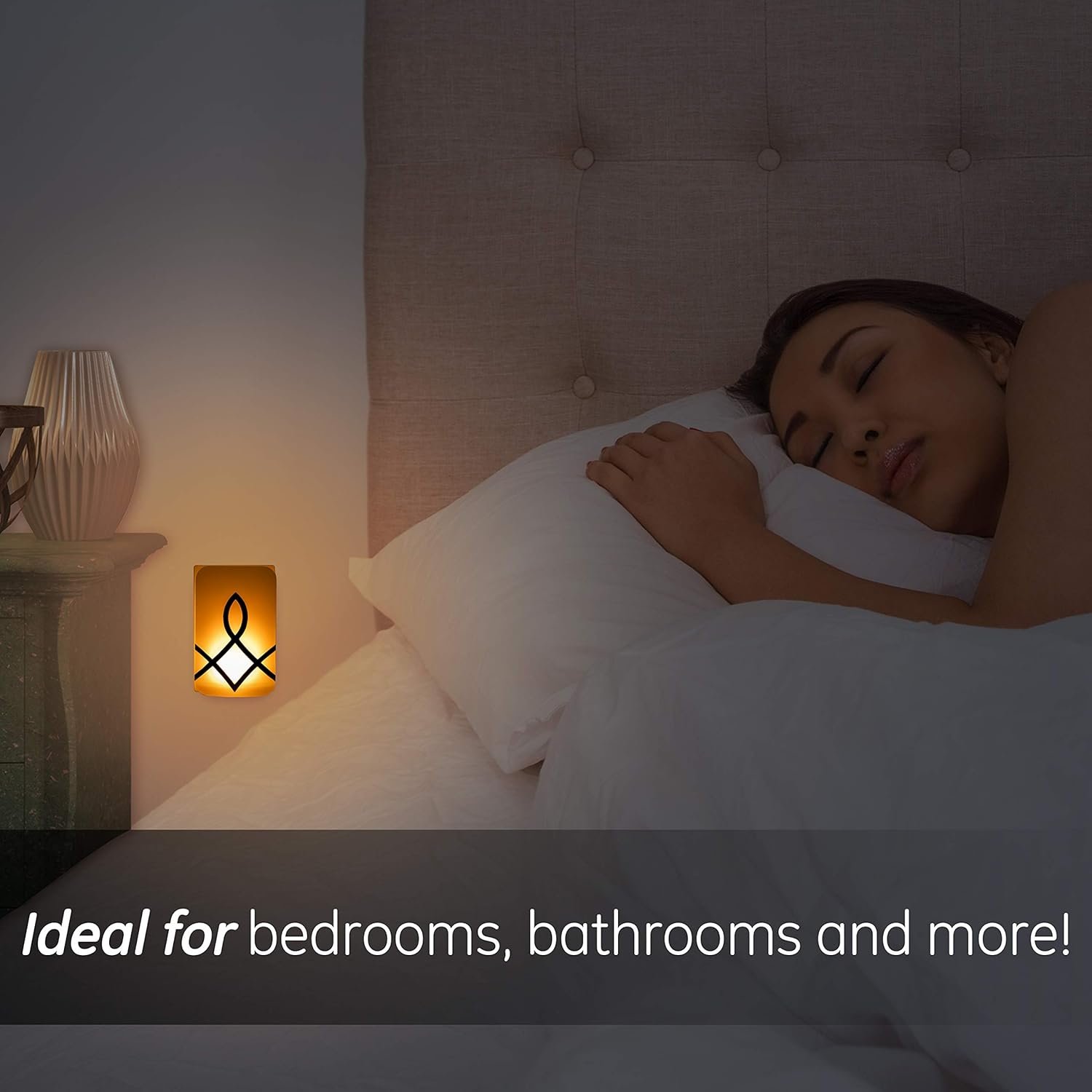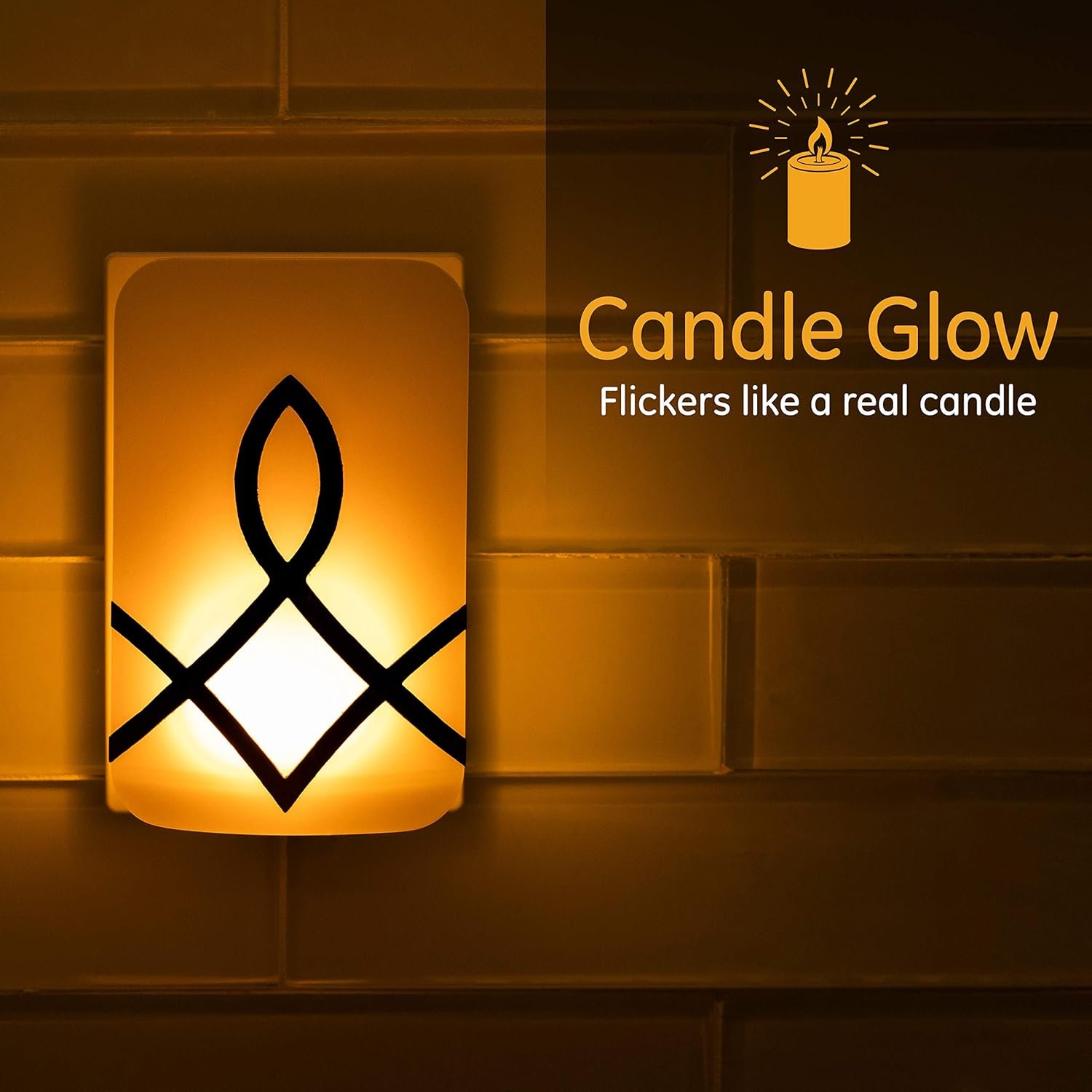 This GE branded LED Sleep Lite with Candle Glow combines the beauty of candlelight with the benefits of LED technology. The elegant design houses soft, energy-efficient LEDs that glow through the night. Choose from a flickering effect that simulates a candle, regular amber or soft white in high or low brightness settings. The amber Sleep Lite setting also promotes better sleep by doing away with the all-too-common blue light, which throws off our circadian rhythms. Set an elegant and restful mood with the GE branded LED plug-in Sleep Lite with Candle Glow.