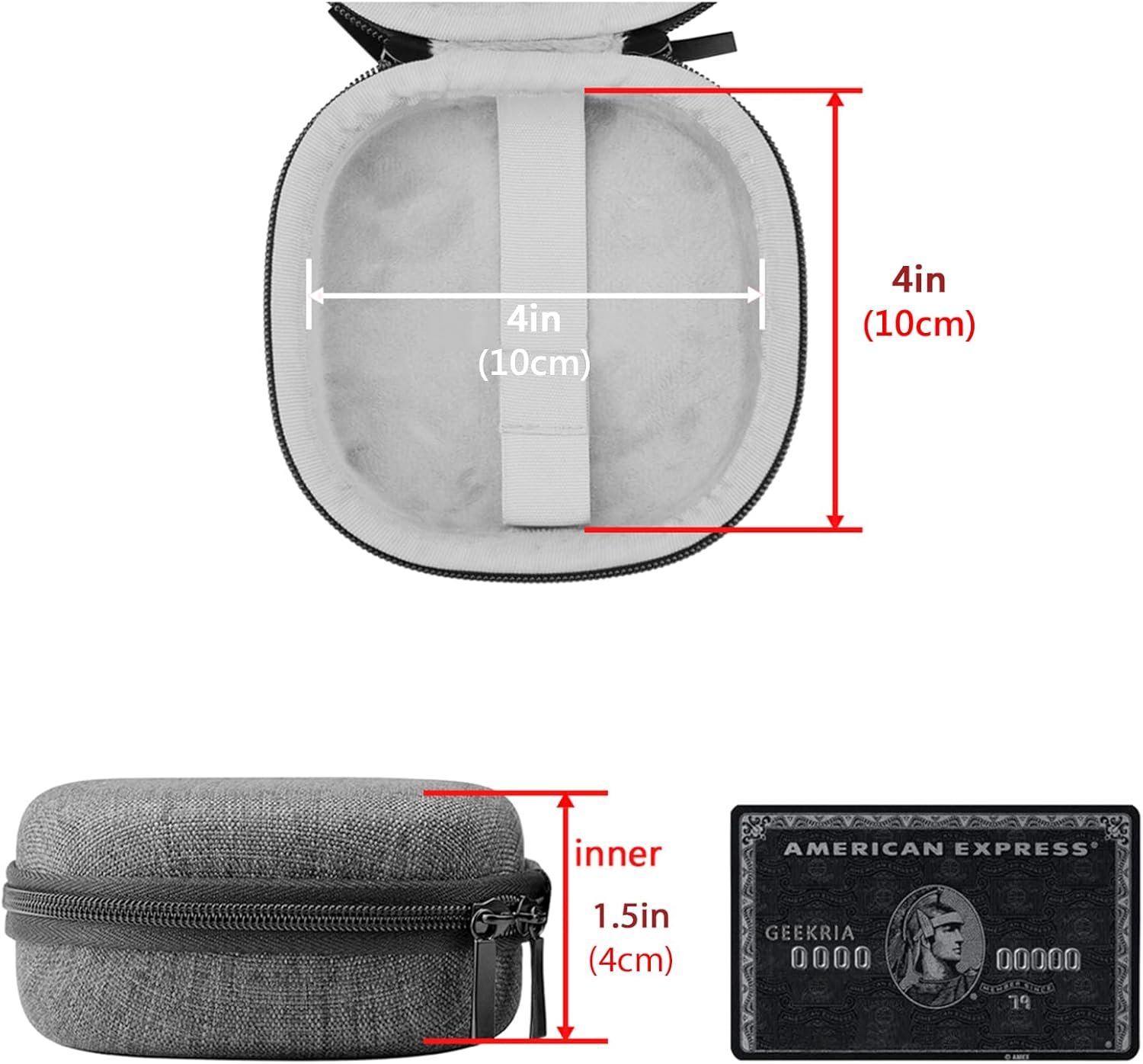 Maximum compatible headphones dimensions (case inside): 4 x 4 x 1.5 inches (10 X 10 X 4 cm)