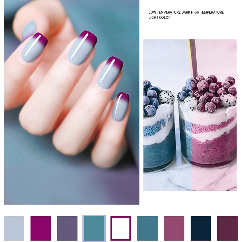 Gel Nail Polish Set -Color Changing Gel Nail Polish Set Purple Blue Pink Red Laverder Wind Red Black Color Changing Gel Polish Soak Off UV LED Thermal Temperature Art (005)