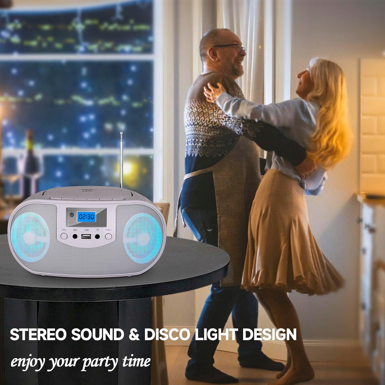 【Disco Light Design】The CD boombox with disco lights can select a variety of colors and lighting effects to create an excellent party atmosphere. Using the remote control to switch songs, pause, change the light mode and perform other operations without being close to the boombox