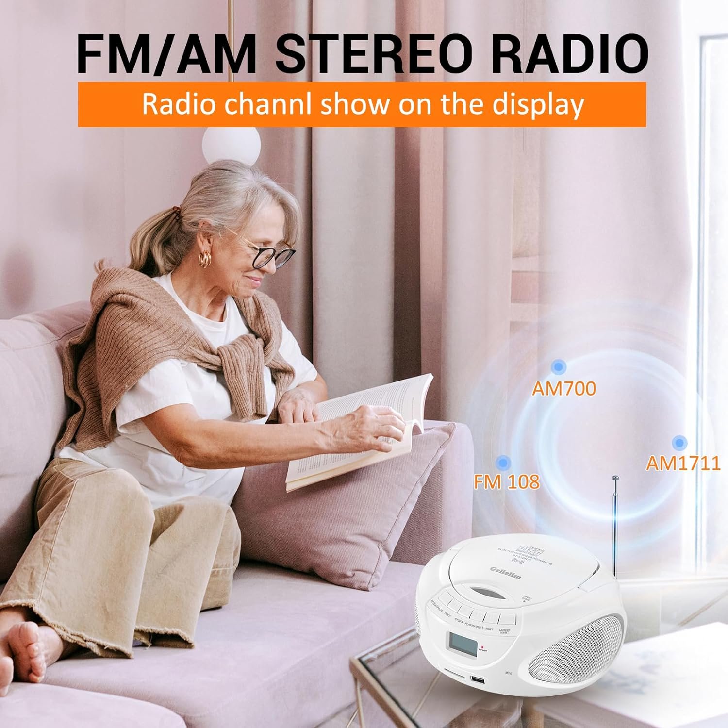 [AM/FM Radio] Portable radio with high sensitivity receiver and retractable external antenna for excellent reception of AM and FM radio stations; easy-to-use tuning dial, ideal for listening to radio stations(View radio channels on the display)