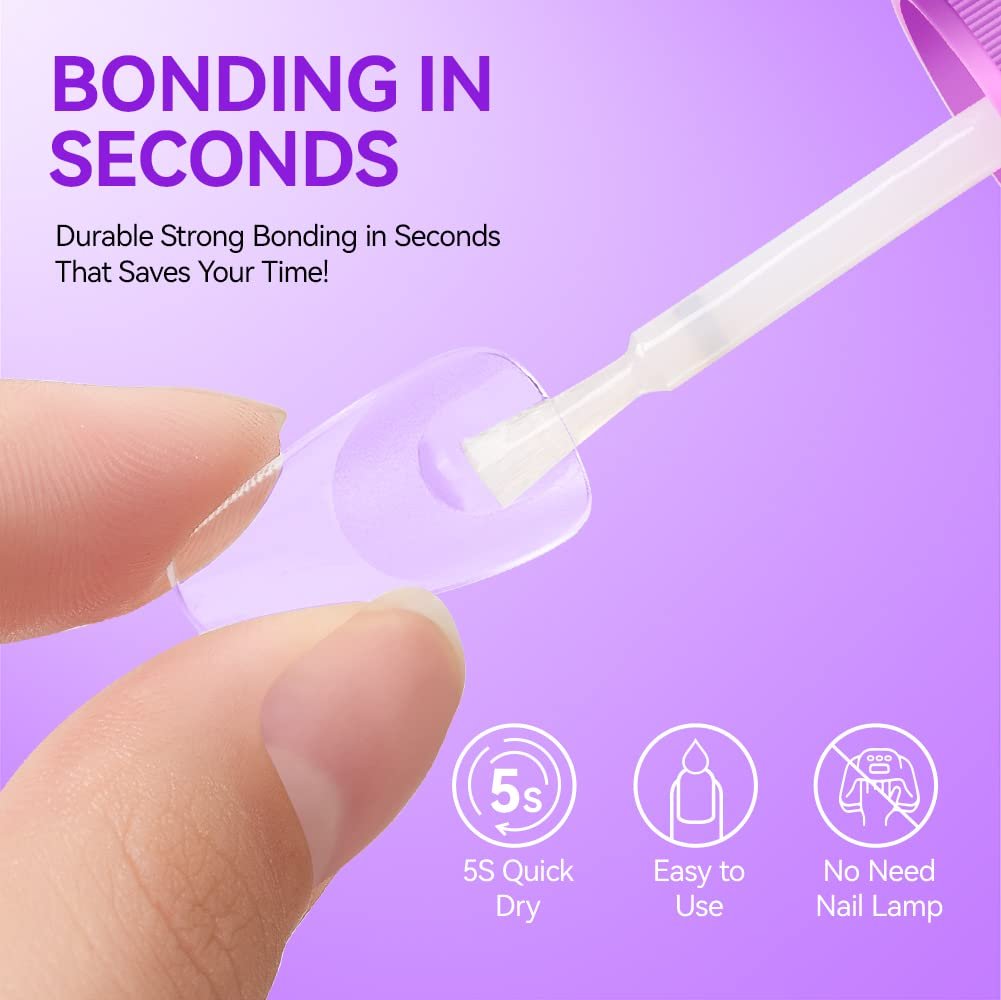 [Quick Drying & Super Hold] Perfect no-cure strong nail glue. No UV/Led lamp for curing is required. Dry quickly with 5 seconds of pressing and holding. It also has a strong bond that can easily hold up your Press on Nails, Fake Nails for 14-30 days