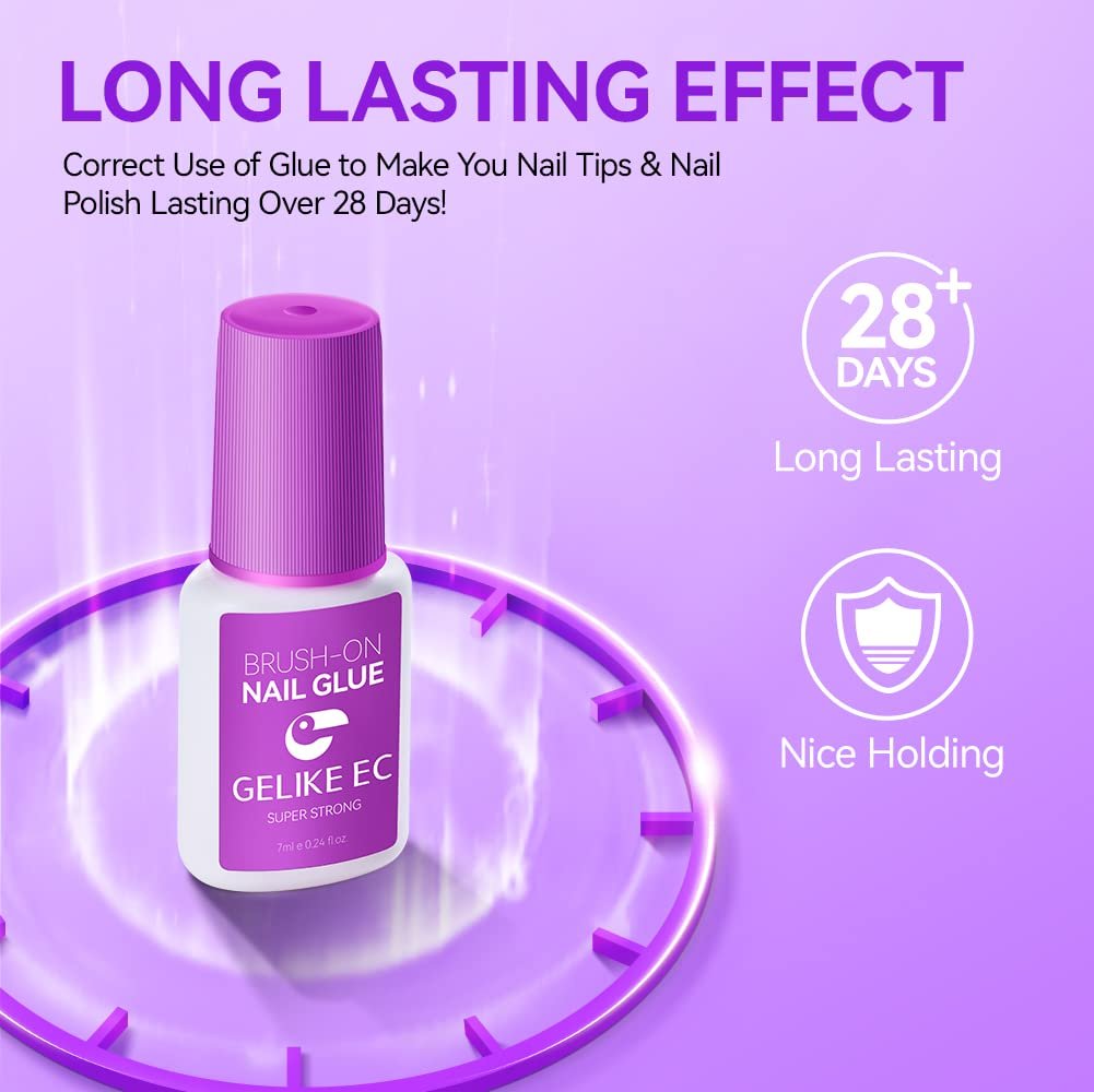 [Widely Use& Strong Compatibility] Gelike EC Nail Glue is a professional nail art essential for fake nails, and small nail art decorations such as beads, rhinestones, and gemstones. And widely compatible with all brands of nail tips