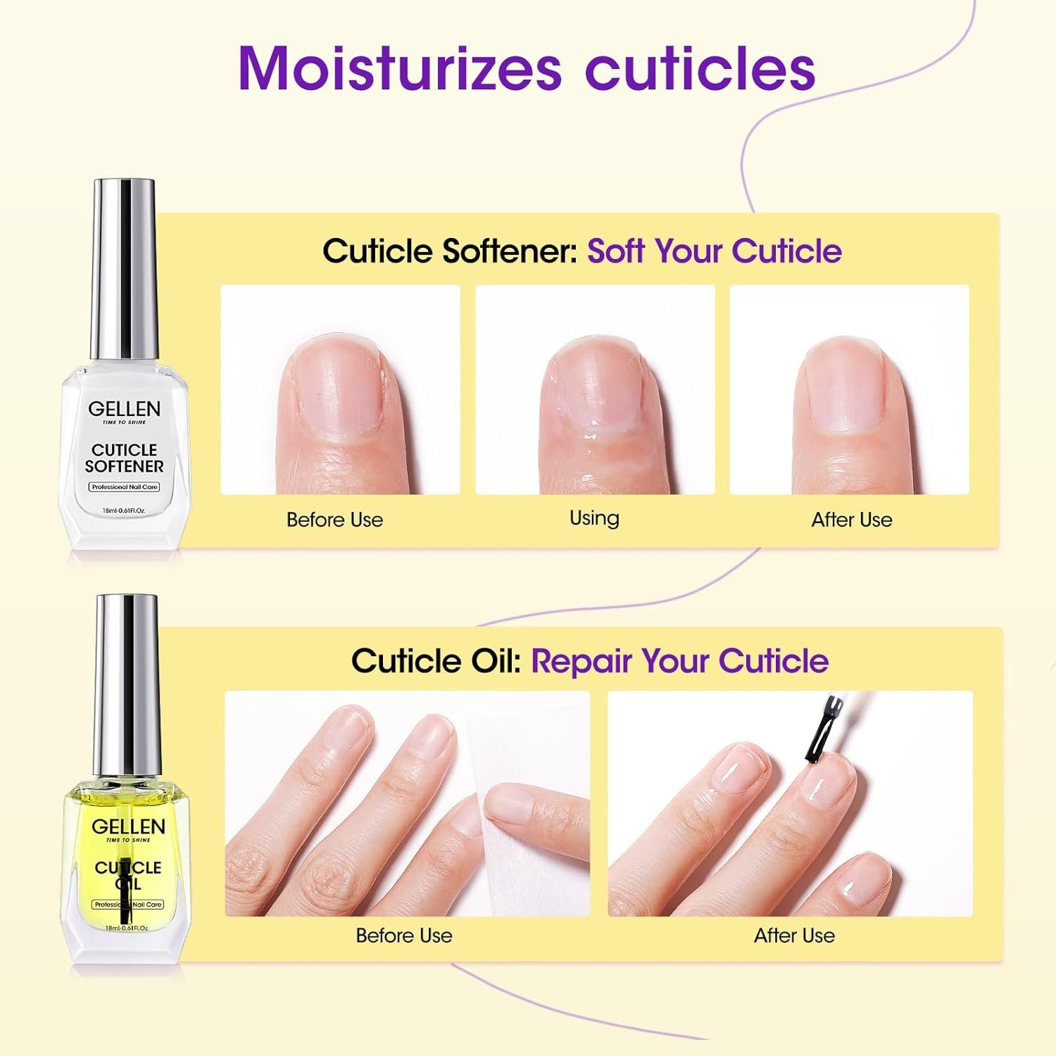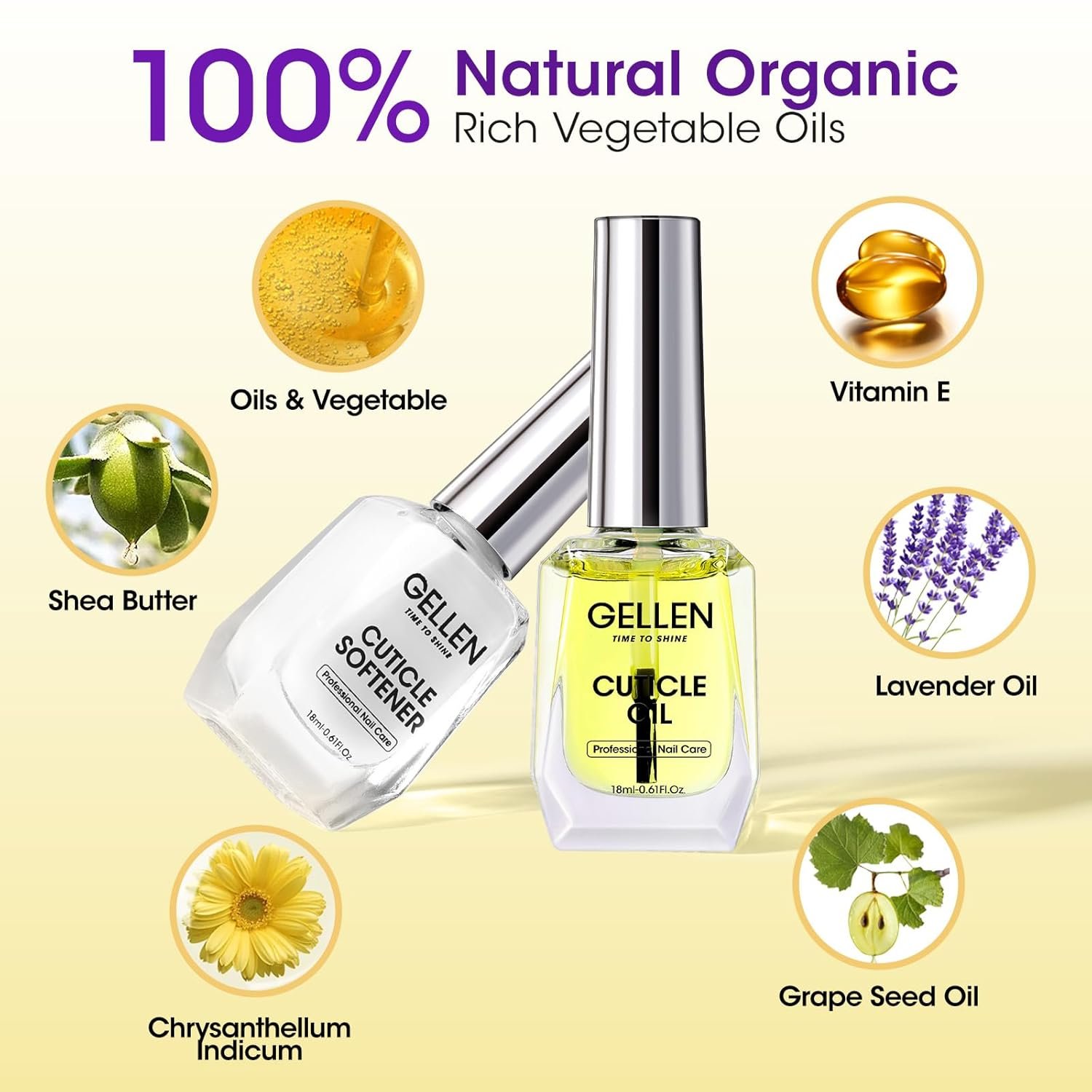 👍【NATURAL ORGANIC CUTICLE OIL】: The cuticle oil can nourish dry, cracked, and fragile cuticles. Gellen cuticle oil is made from natural ingredients and has a silky smooth texture, easily absorbed, it’s perfect for conditioning and moisturizing cuticles, helping to reduce dryness and brittleness for of nails and promote healthy nail growth.