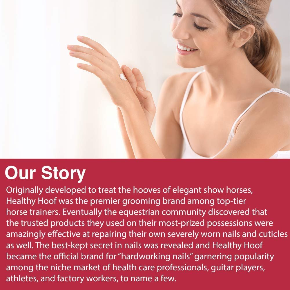 FORMULATED BY HEALTHY HOOF, THE TRAINER’S CHOICE: Healthy Hoof is the premier grooming brand among top-tier horse trainers. Originally developed for effective repair of hardworking nails and to treat the hooves of elegant show horses. This original equestrian formula is used by horse trainers and was amazingly effective at repairing even their own severely worn nails and cuticles! With the world-renowned Healthy Hoof, experience unrivaled conditioning therapy for nails, hands, and feet!