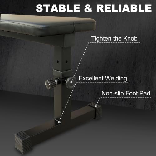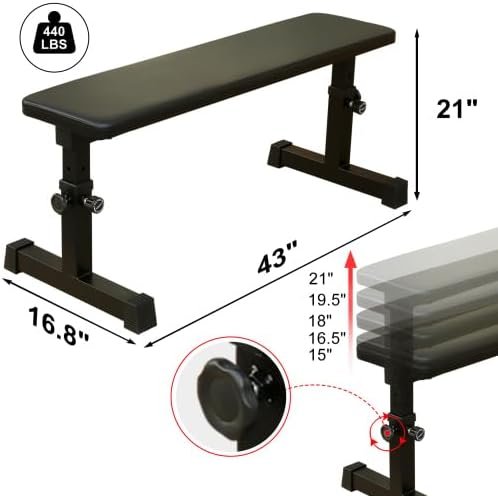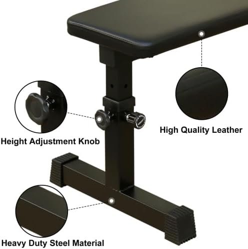 Generic Height Adjustable Utility Flat 300 lbs Capacity Weight Bench For Strength Training And Ab Exercises, Black