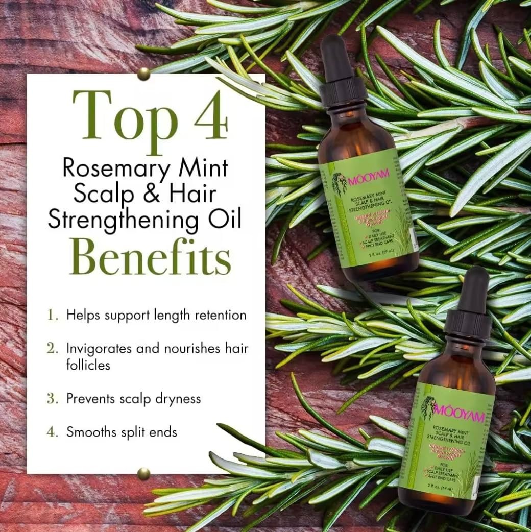 Generic Natural Organic Rosemary Mint Hair Oil for All Hair Types, 2 Fl Oz – Strengthens Hair Roots, Promotes Hair Growth, Paraben Free, Clear, For Women