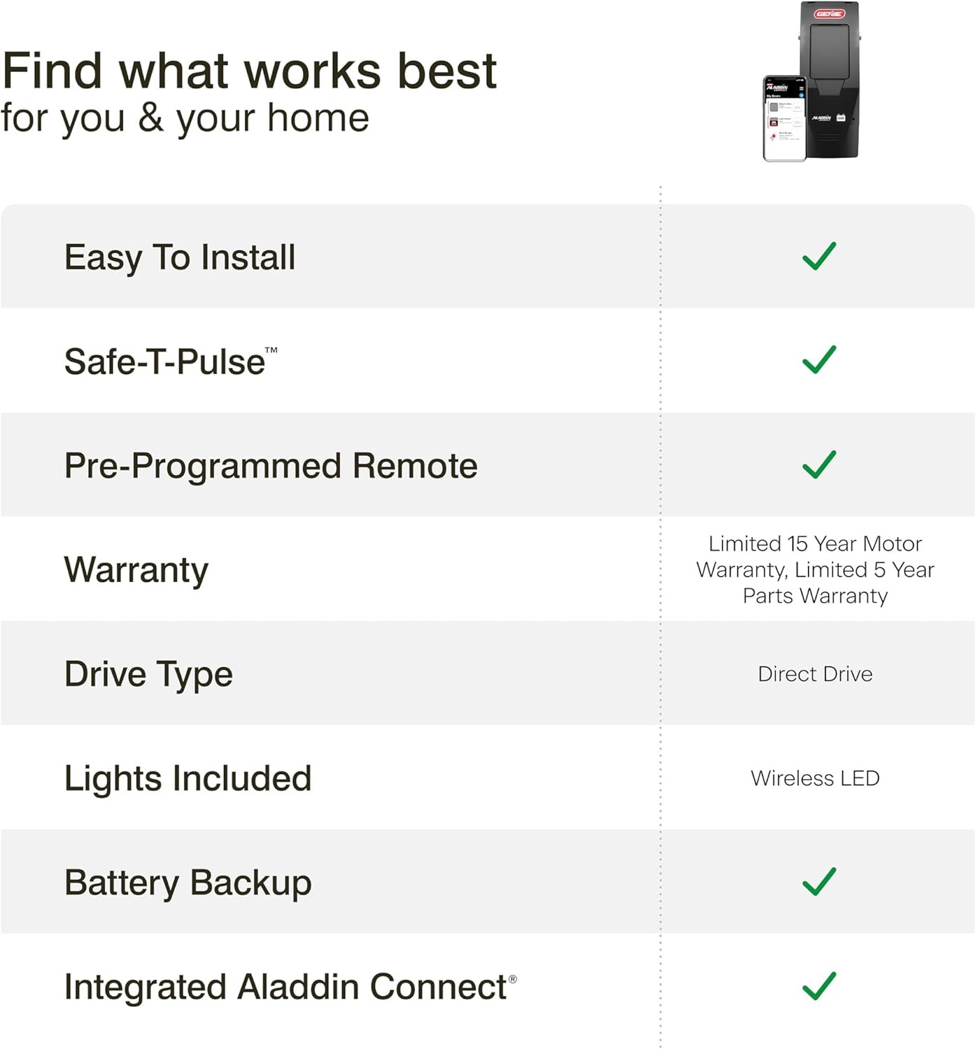The built-in Aladdin Connect technology allows you to monitor, open and close your garage door from anywhere with your smartphone. Works with Smart Home Automation platforms Amazon In-Garage Delivery, Alexa, Google Assistant, SmartThings, URC, Control4 and many more