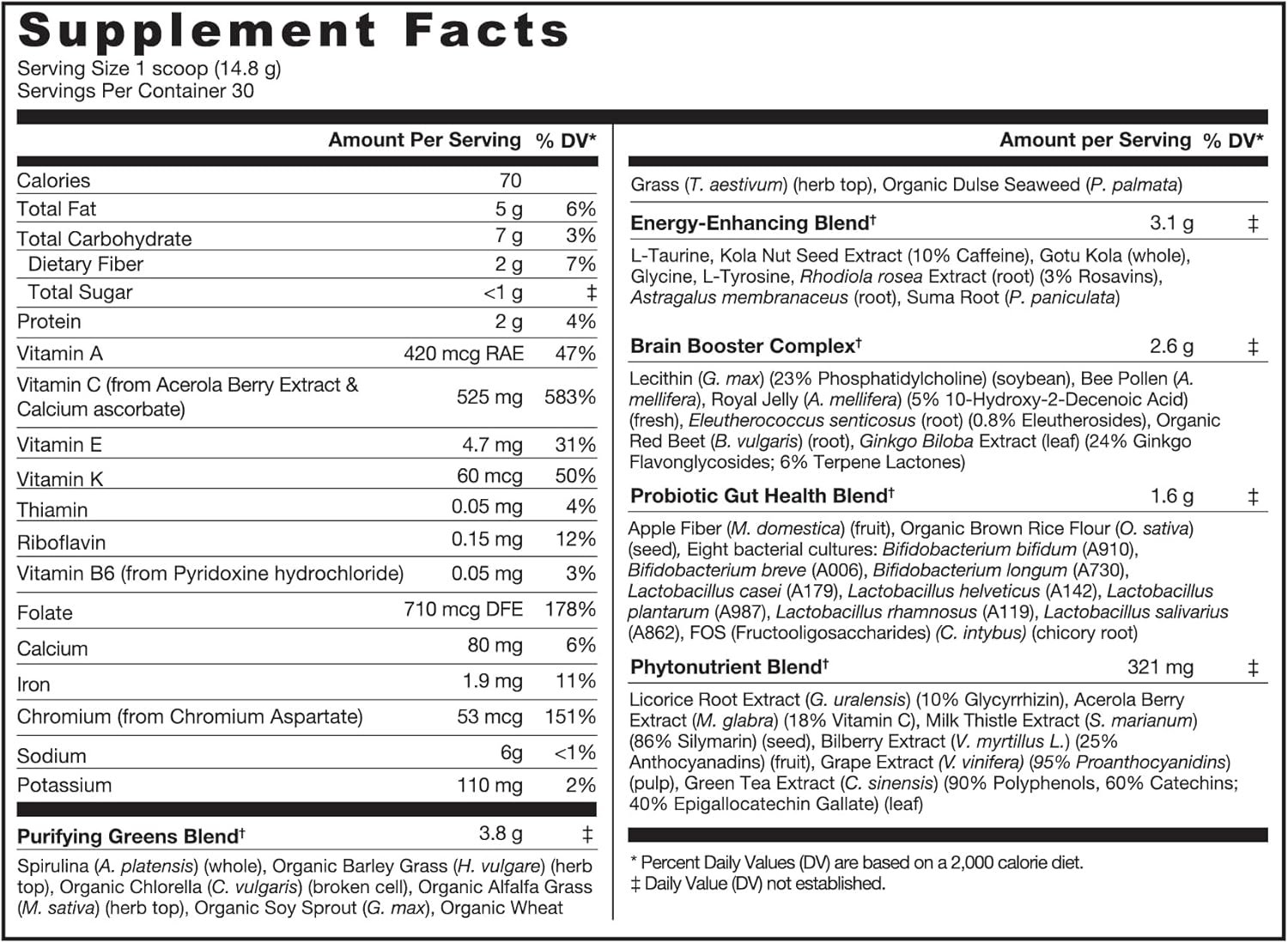DAILY SUPERFOOD: Boost your energy through greens! Our Greens + Extra Energy is formulated with five powerful, targeted blends that nourish & support the whole body to help improve energy, support cognitive and motor performance & more.