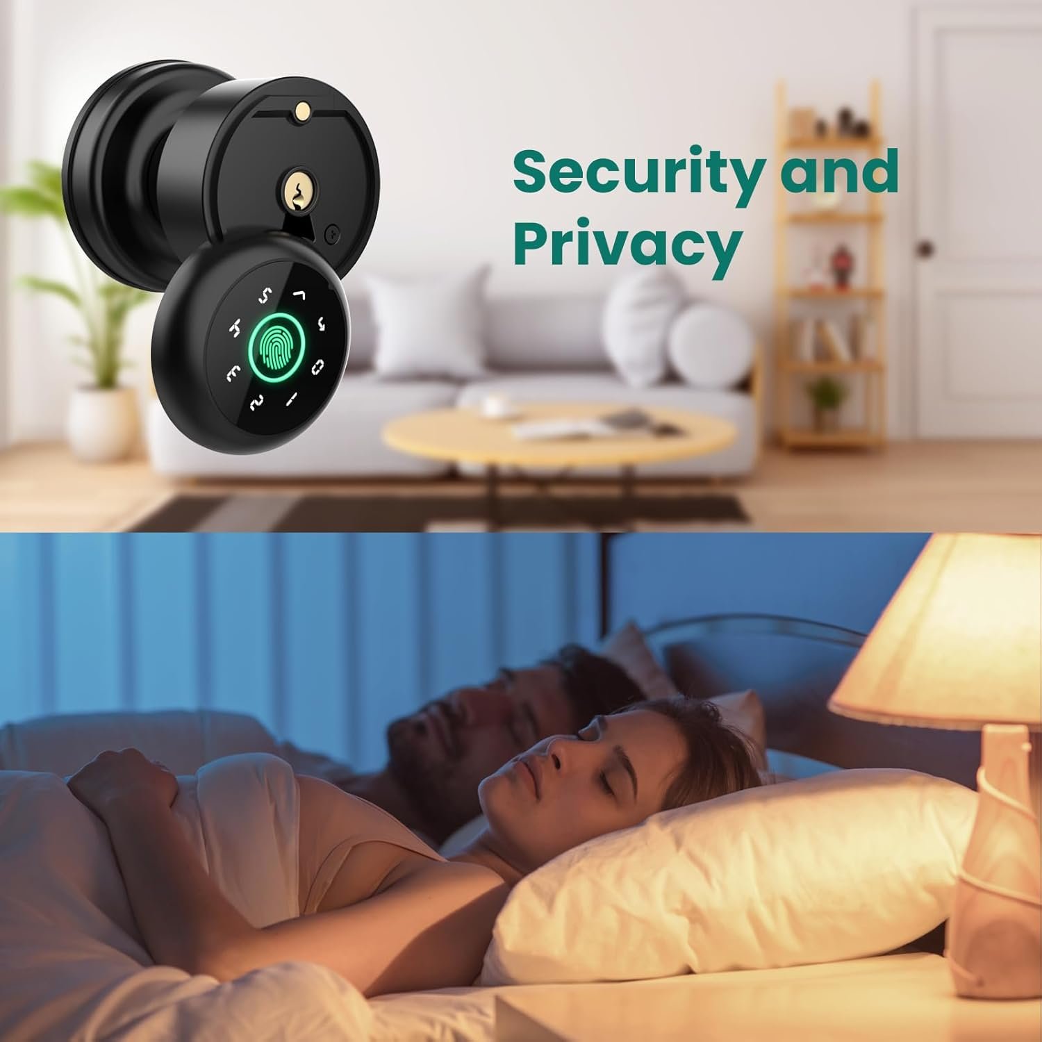 GHome 4 in 1 Smart Fingerprint Door Knob with Keypad Door Lock, Biometric Smart Door Knobs & App Control, Keyless Entry Door Lock Great for Home, Bedroom, Apartment Offices and Garages