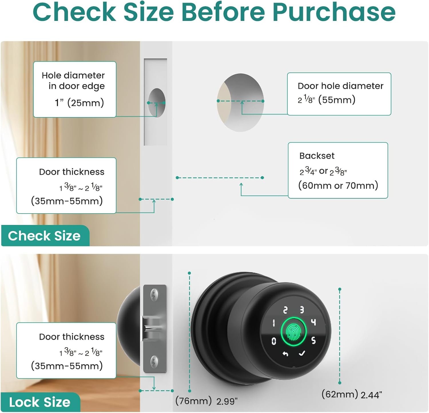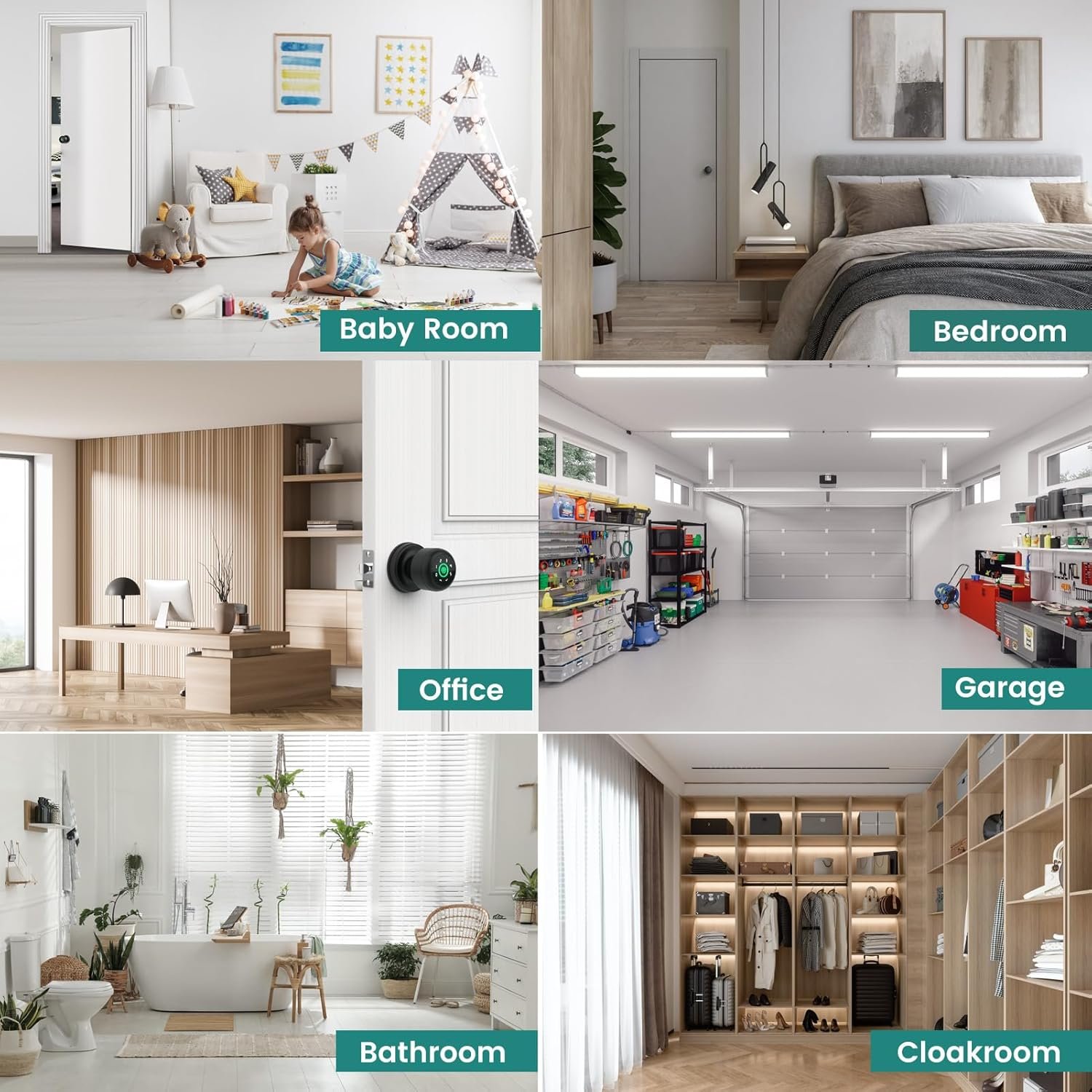 【Smart App Control】The smart lock offers a free app that allows you can add fingerprints and password, check unlock records, set auto lock, passage mode and privacy mode to provide a more convenient and secure using. Note: Control within Bluetooth Range. While door knob offline, please revoke door knob with fingerprint first and reconnect it