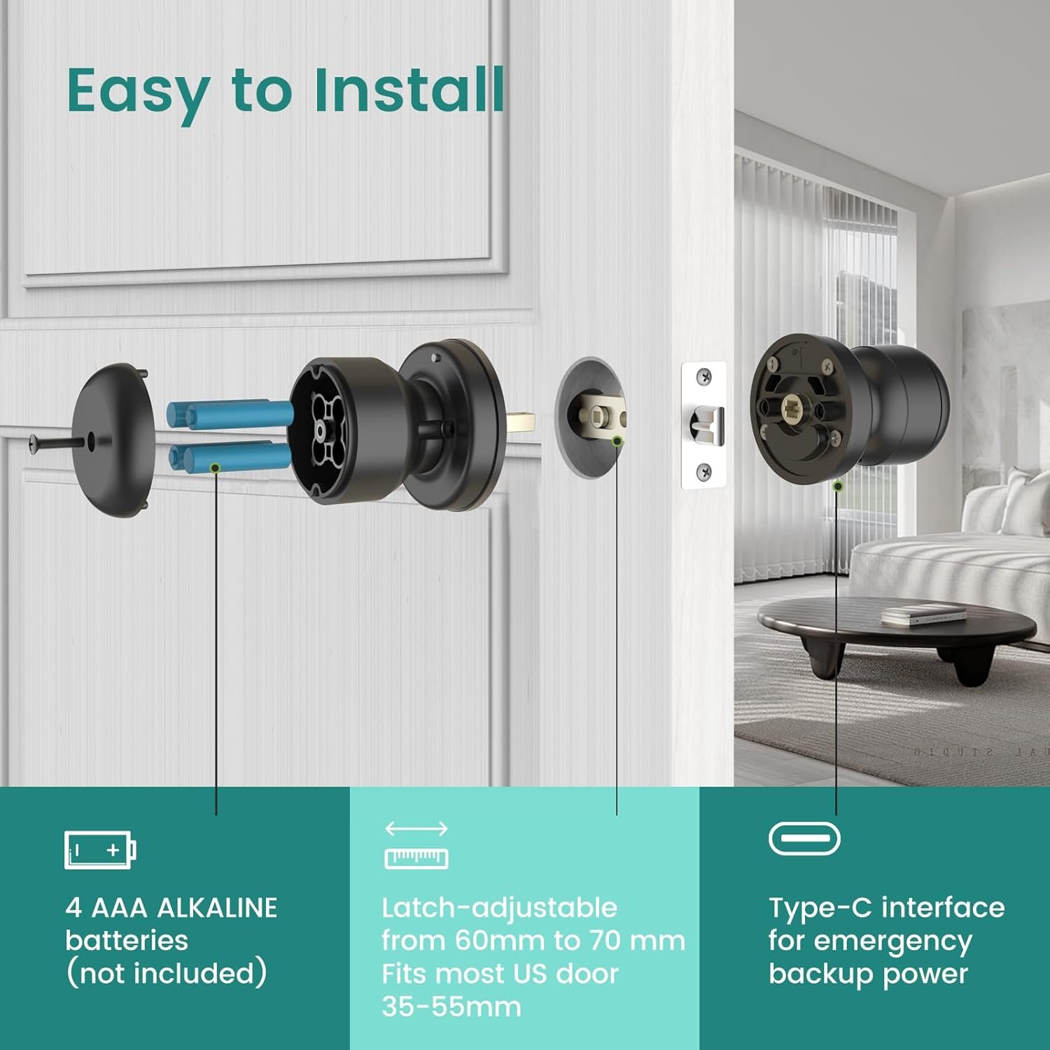 【Easy Installation & Excellent Customer Service】The smart door knob can be easily installed with a screwdriver in minutes and fits most US door .Any about the smart door knob lock’s problem, please feel free to contact us. 24-hour technical support by email or by phone