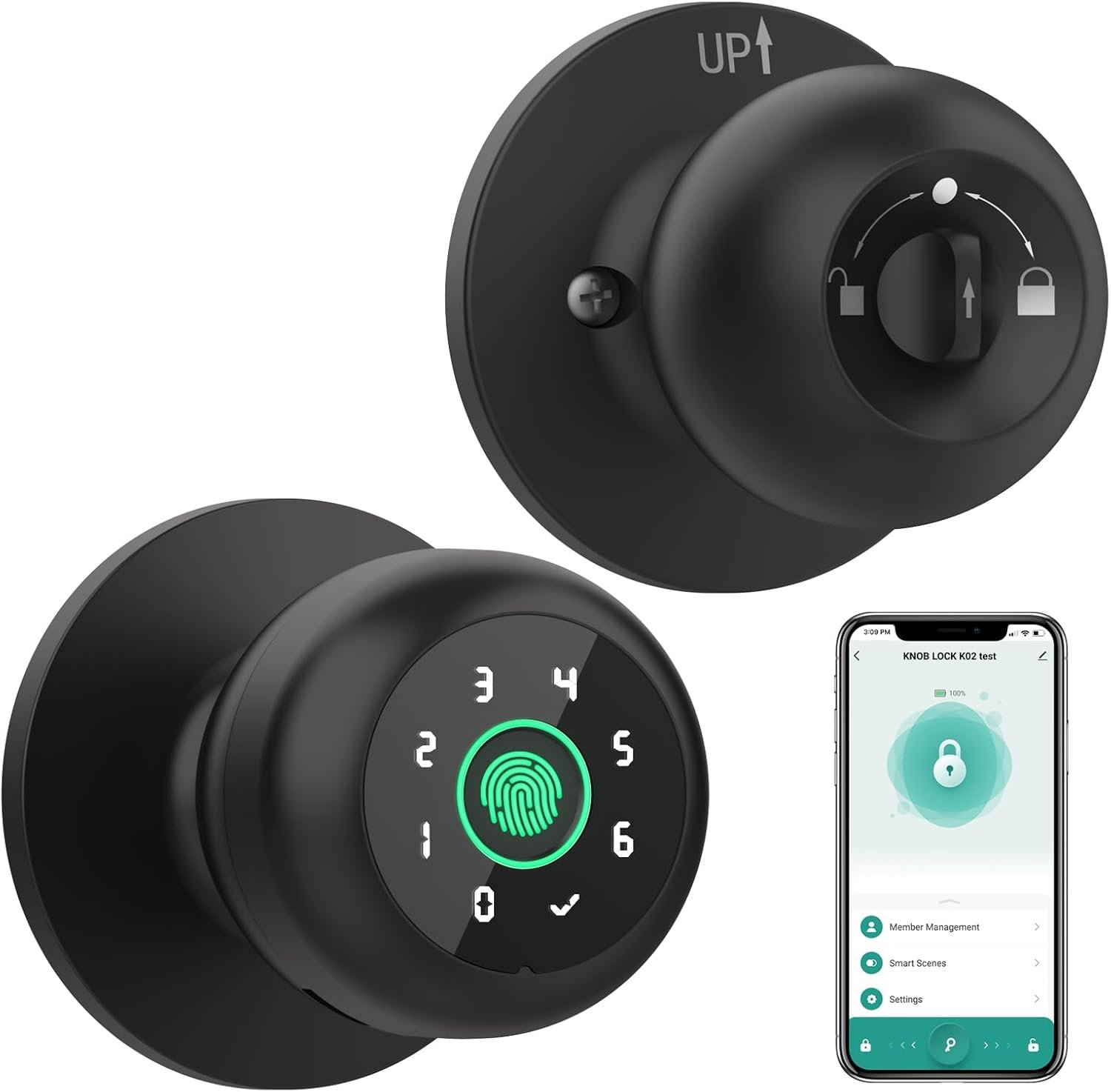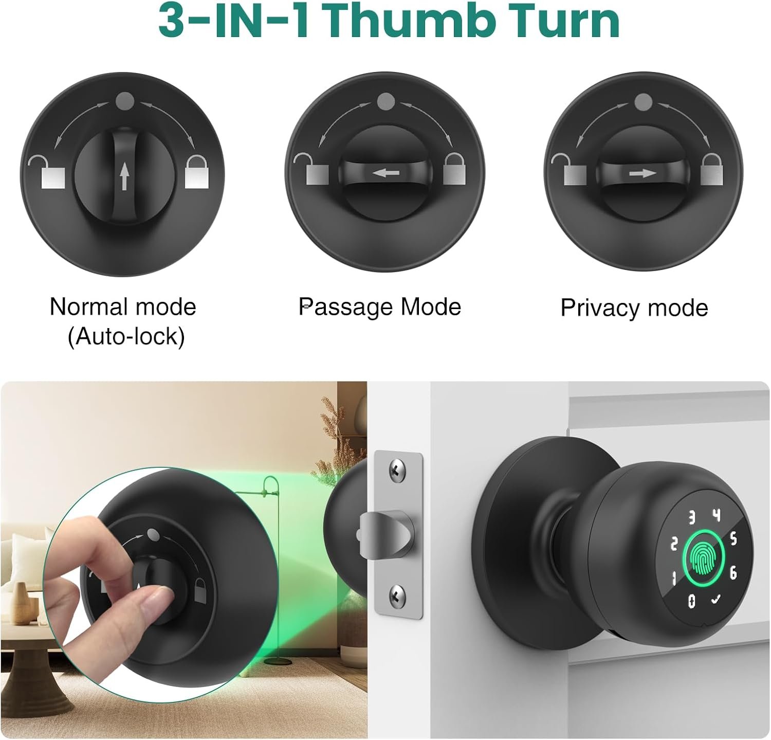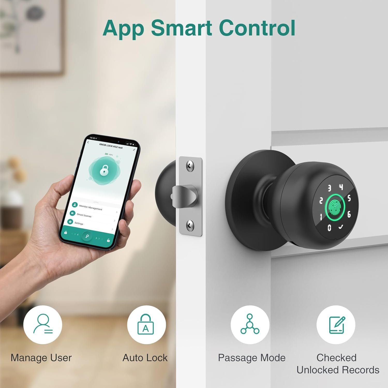 【Smart App Control】The smart lock offers a free app that allows you can add fingerprints and password, check unlock records, set auto lock, passage mode and privacy mode to provide a more convenient and secure using. Note: Control within Bluetooth Range. While door knob offline, please revoke door knob with fingerprint first and reconnect it