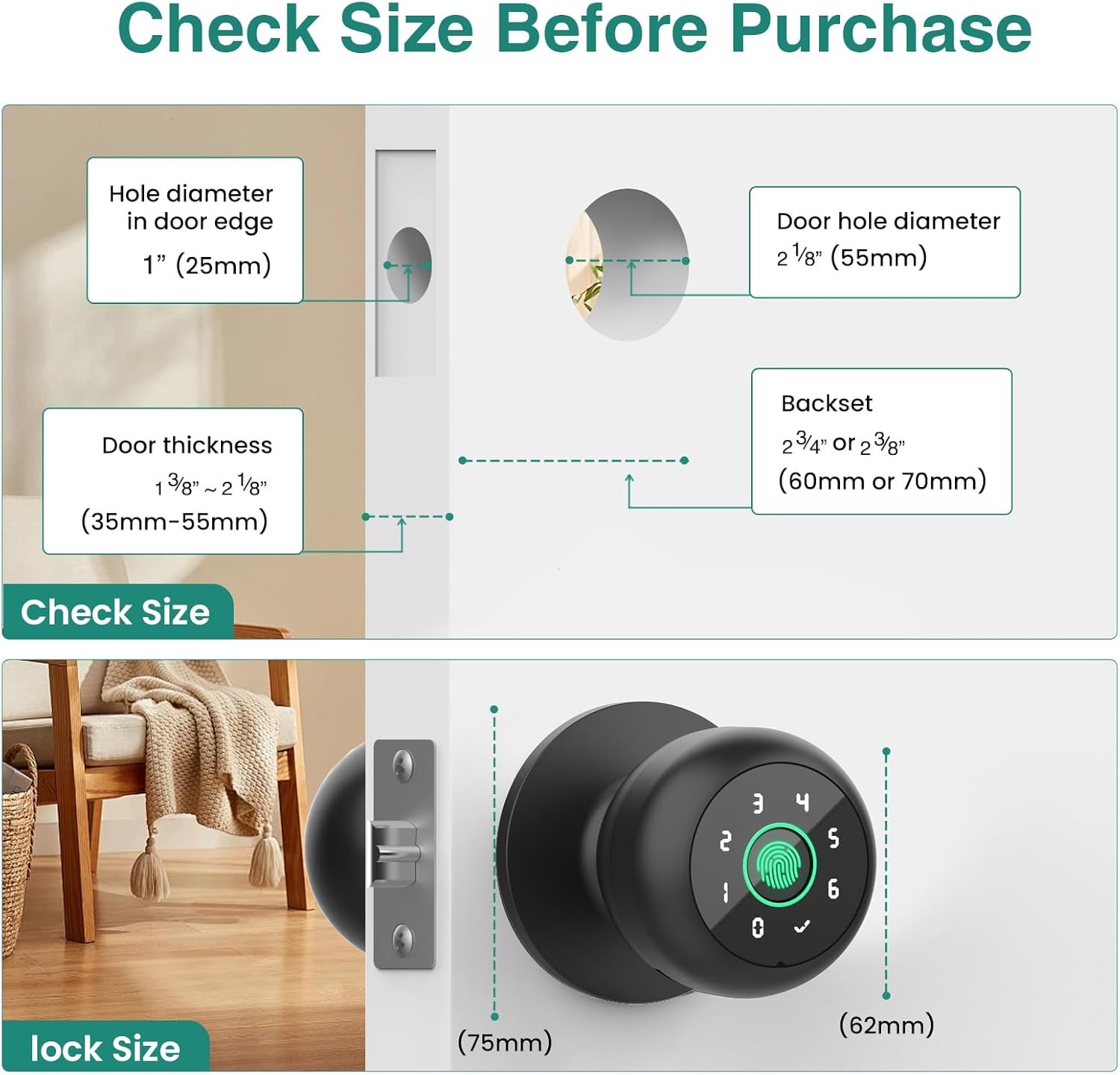 【Easy Installation】The smart door knob can be easily installed with a screwdriver in minutes and fits most US door.