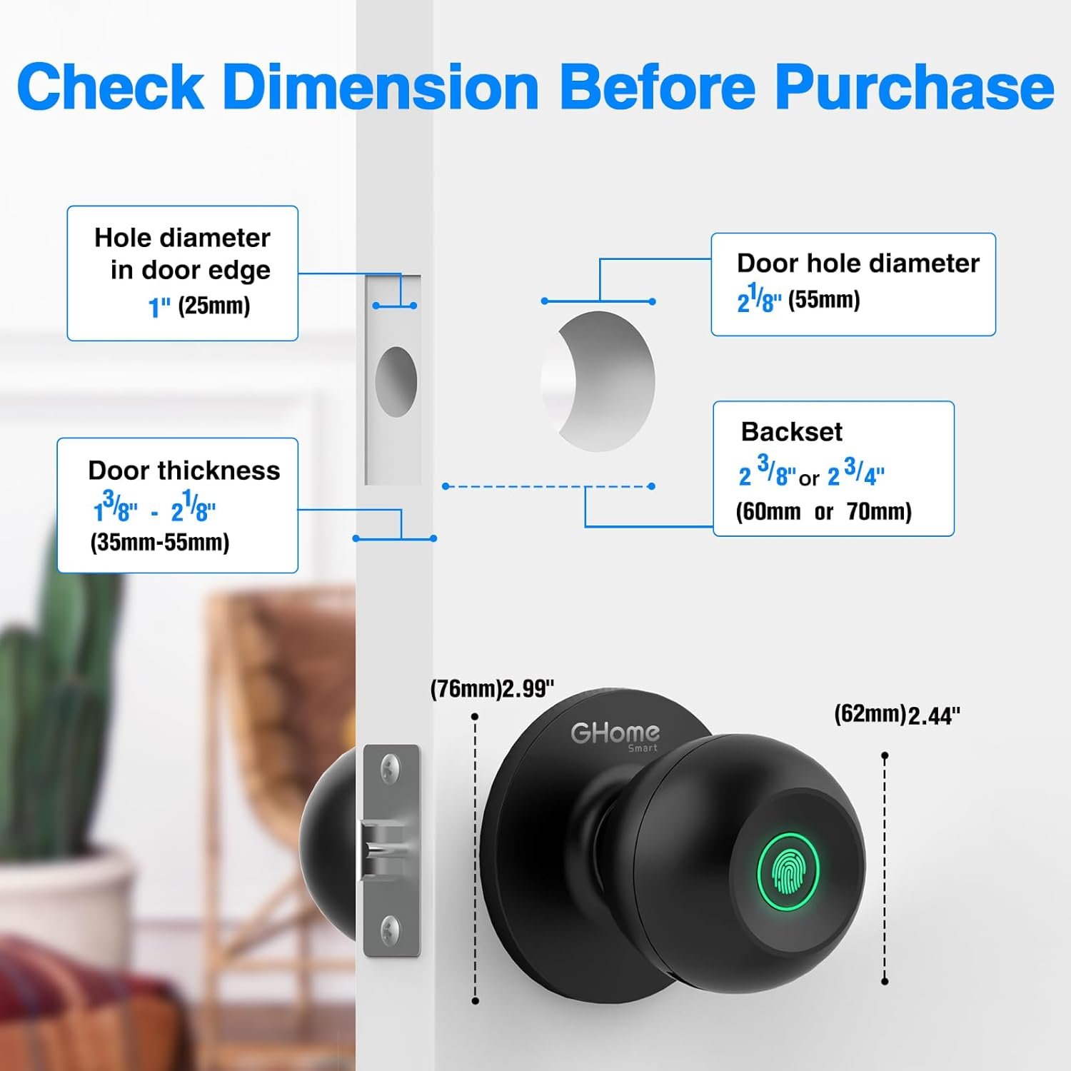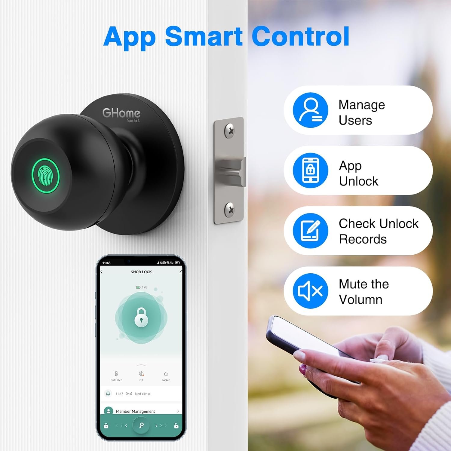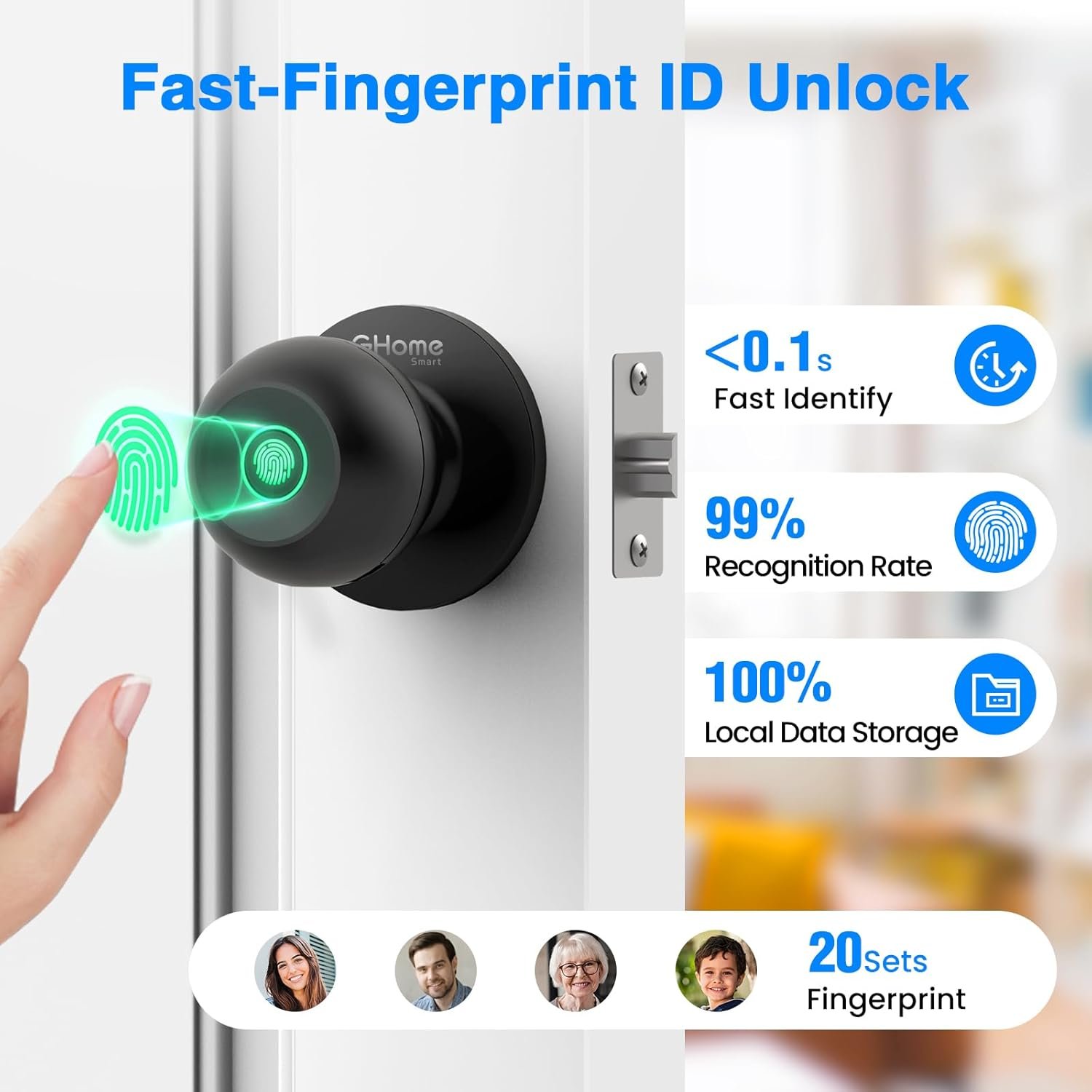 【3-in-1 Unlocking Methods】GHome Smart smart door lock provides 3 unlocking methods: fingerprint unlocking, App control, and emergency backup key to meet your diverse needs, making entry and exit more convenient and safer. This biometric door lock suits bedrooms, front doors, homes, apartments, offices, garages, hotels, etc.