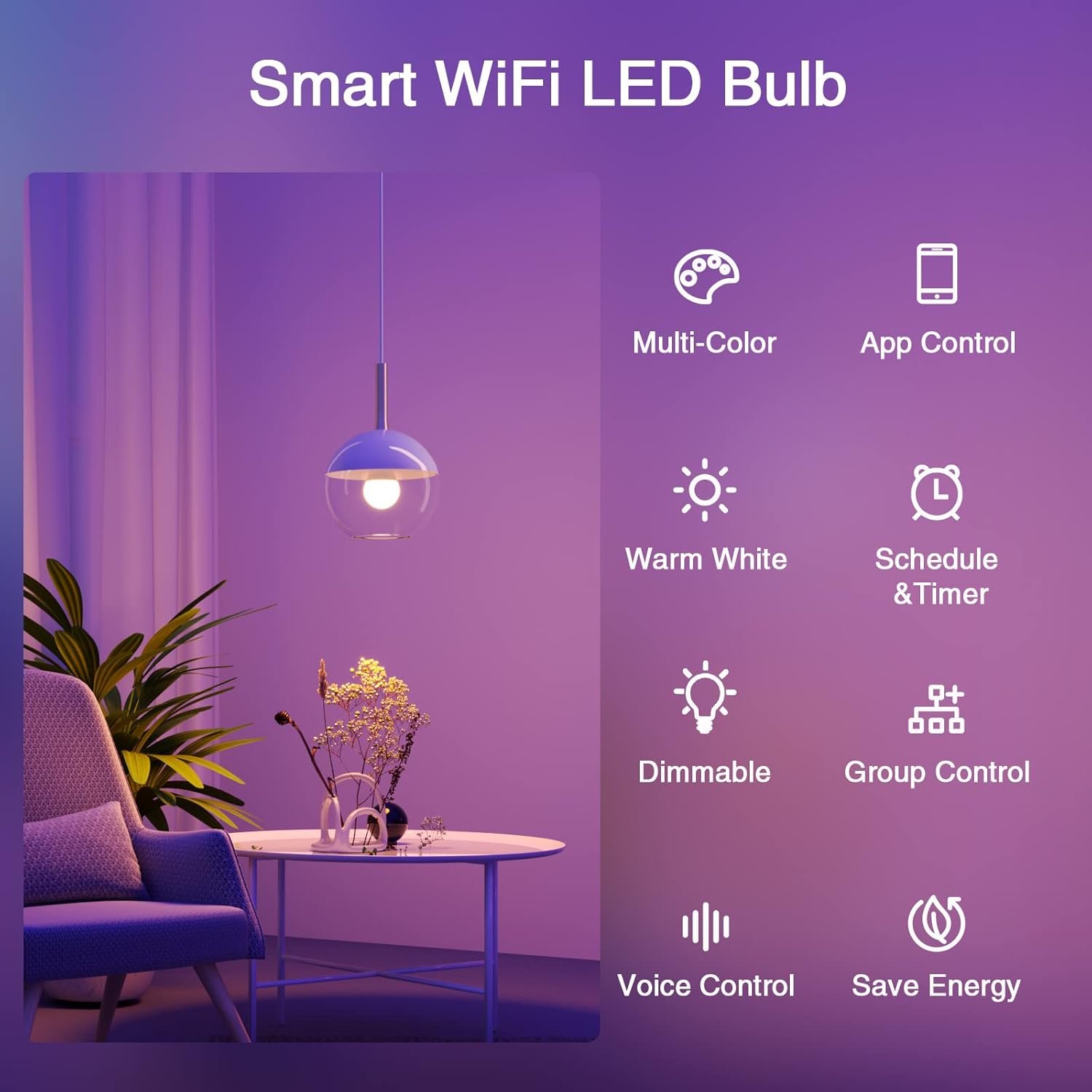 Dimmable Multicolor & Warm White: Smart alexa light bulb with 16 million colors and warm white (2700K). Set your desired colors and adjust brightness from 1%-100%