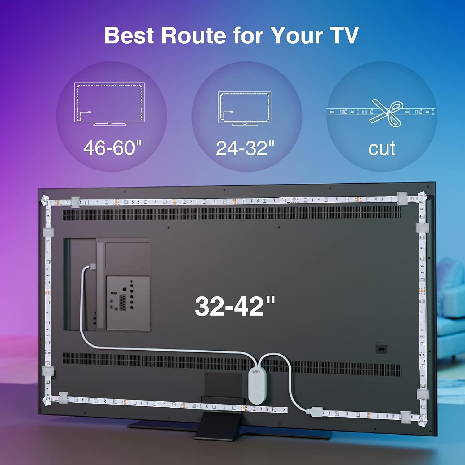 The App can be downloaded by scanning the QR code of the product manual with smartphone. If your router is dual-band, ensure that 2.4G and 5G networks have different network names – SSID;App connection method can refer to the VideoSuitable for 30-60 inchesNote: Please keep surface clean and dry before sticking the strip light on your TV.