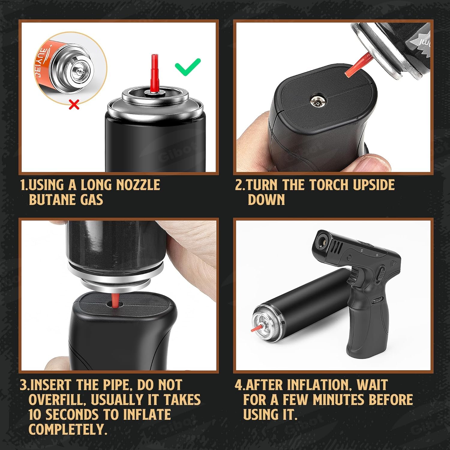 Universal Butane Tank Compatibility: Say goodbye to the confusion of selecting the right tank. The versatile Gibot kitchen butane torch gun lighter seamlessly works with all butane gas brands, be it a long nozzle or a short nozzle tank. Effortlessly adapt the torch for long nozzle gas tanks or utilize the included red adapter from the package to extend the nozzle for short nozzle gas tanks. It’s a hassle-free solution for refilling and using your butane torch gun or culinary torch. dab torch lighter.