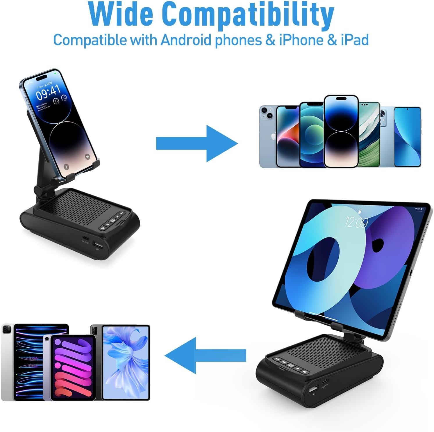 2 in 1 Function: Bluetooth Speaker and the design of the mobile phone holder make it more convenient for you to use.Bluetooth 5.0 speaker cell phone holder Best gift for all people: If you are not satisfied, we provide a free refund.