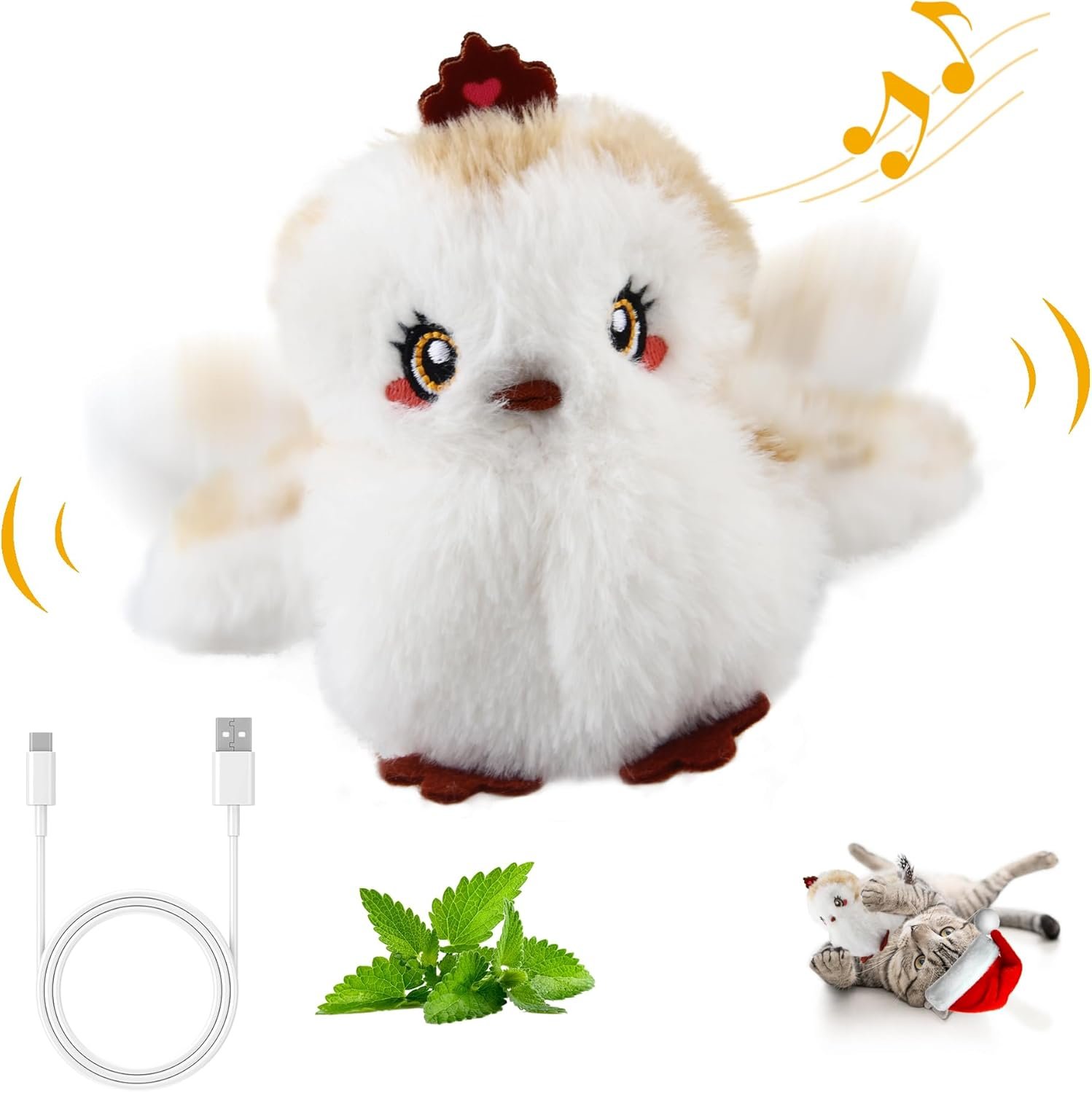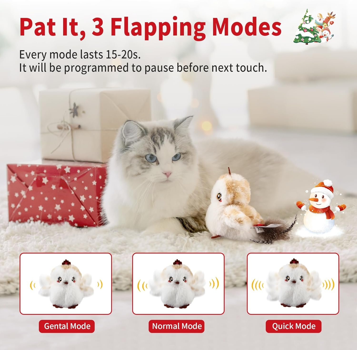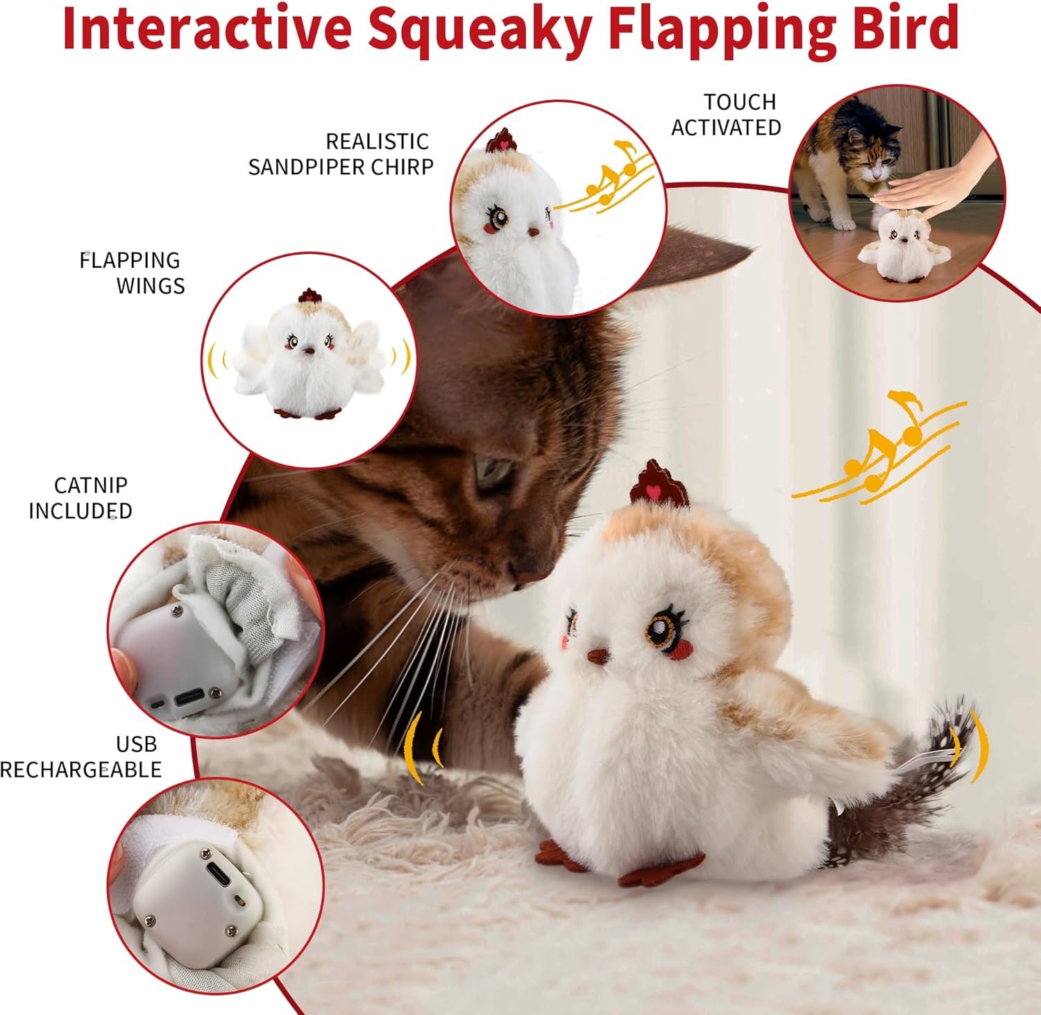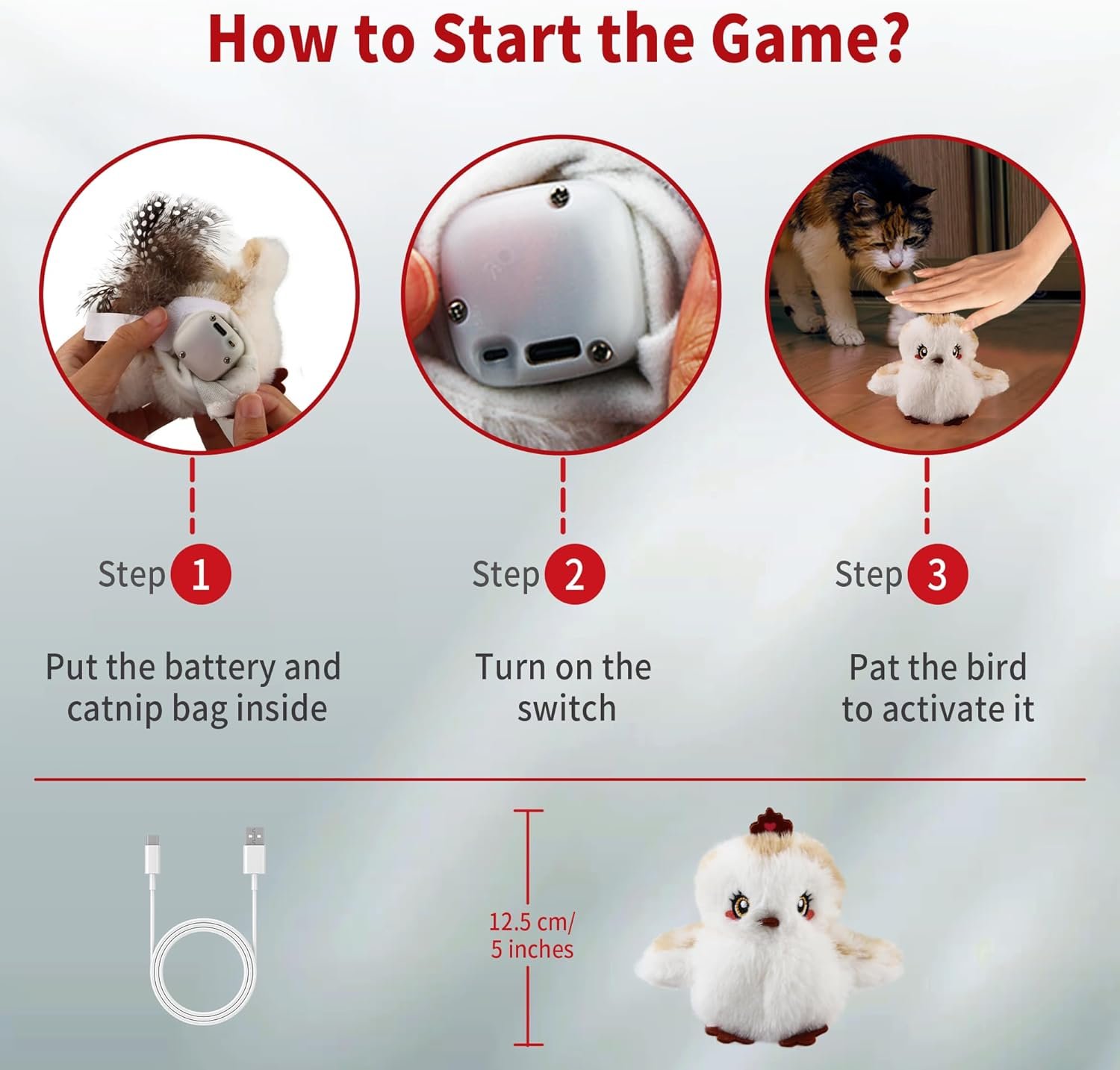 SAFE & SOFT MATERIAL: The automatic cat toys with realistic feather tail are made of soft, safe, and relatively bite-resistant plush for your kitty. We add high-quality North-American catnip bag inside. The chirping bird cat toys packed in one exquisite packing box are appropriate cat birthday toys or cat Festival presents!