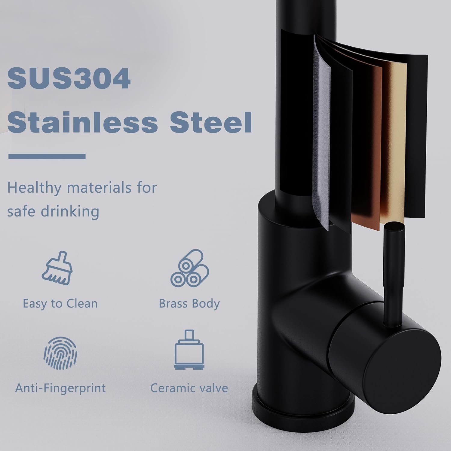 Reliable Quality: Commercial SUS 304 stainless steel construction forged products. It provides a superior anti-corrosion and anti-rust finish that prevents dirt such as fingerprints or water stains from adhering to the faucet surface