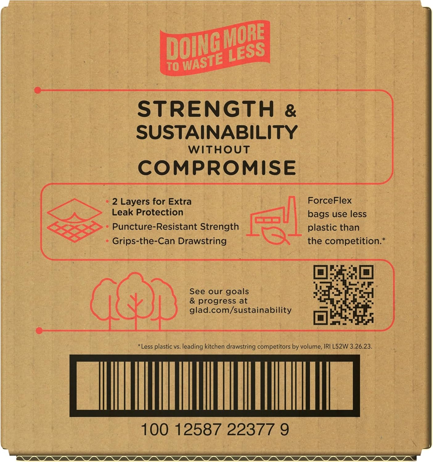 FORCEFLEX TECHNOLOGY: Glad’s patented dual layer technology provides two layers of strength and stretch for 2X Leak Protection with double side seams and a reinforced bottom