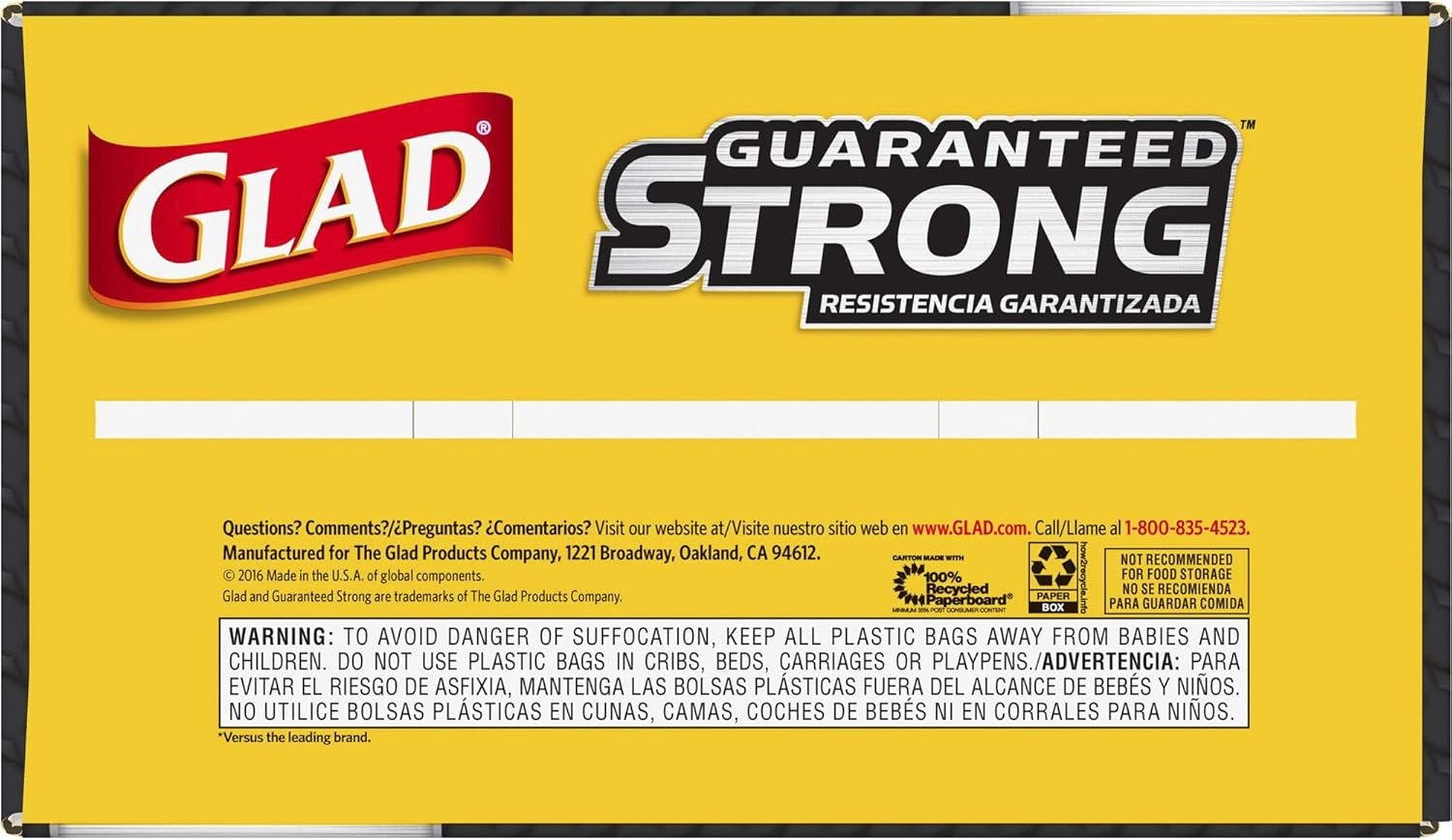 Prevent rips and tears with Glad’s unique design, allowing bag to stretch at the top while reinforced bands through middle contain bulk
