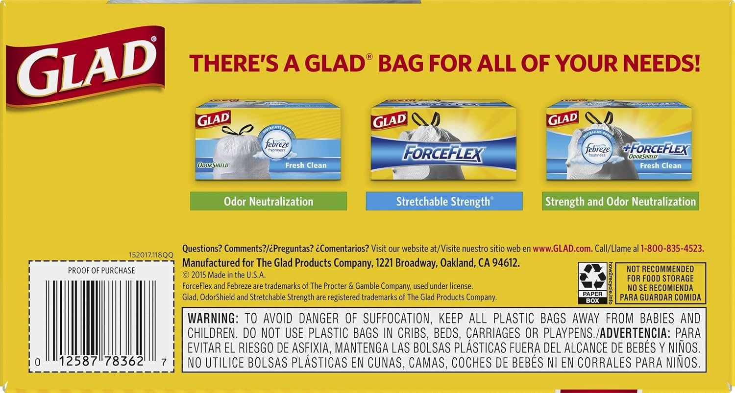 Be the first to review “Glad Trash Bags, Tall Kitchen Drawstring Garbage Bags, 13 Gallon, 45 Count”
