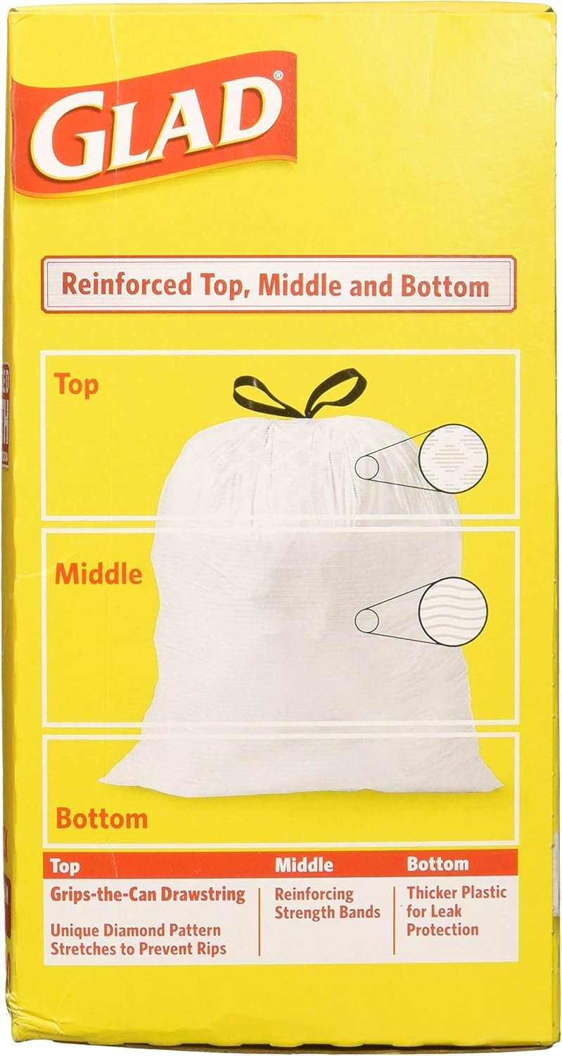 90 count box of 13 gallon kitchen trash bags with drawstring closure. Innovative reinforcing bands help add strength while using less plastic, saving 6.5 million pounds of plastic yearly (equivalent to 140 million fewer trash bags in landfills). Strong, 3-layer drawstring closure makes garbage bags easy to lift, carry and toss away. 13-gallon size for tall garbage bins. Perfect for use throughout the house, in the kitchen or busy home office.