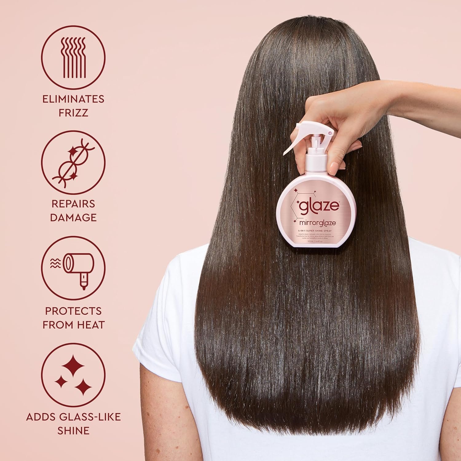 glaze MirrorGlaze Super Sleek Hair Shine Spray – Transforms Frizz to Glass-Like Shine, Protects from Heat, Blocks Humidity + Repairs Bonds – 6.4 oz