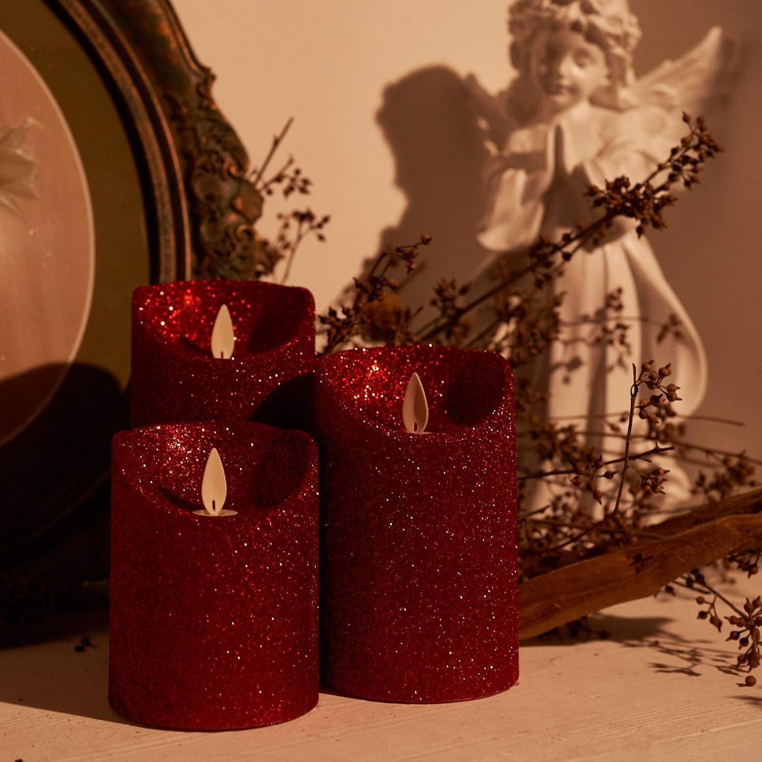 FRIENDLY FOR FAMILY: Flameless candles are different from real fire. Do not worry about the accidents related to fire again. With these wonderful flameless candles, you will have a perfect evening with your family. Enjoy the beauty of a real pillar candle without any mess.