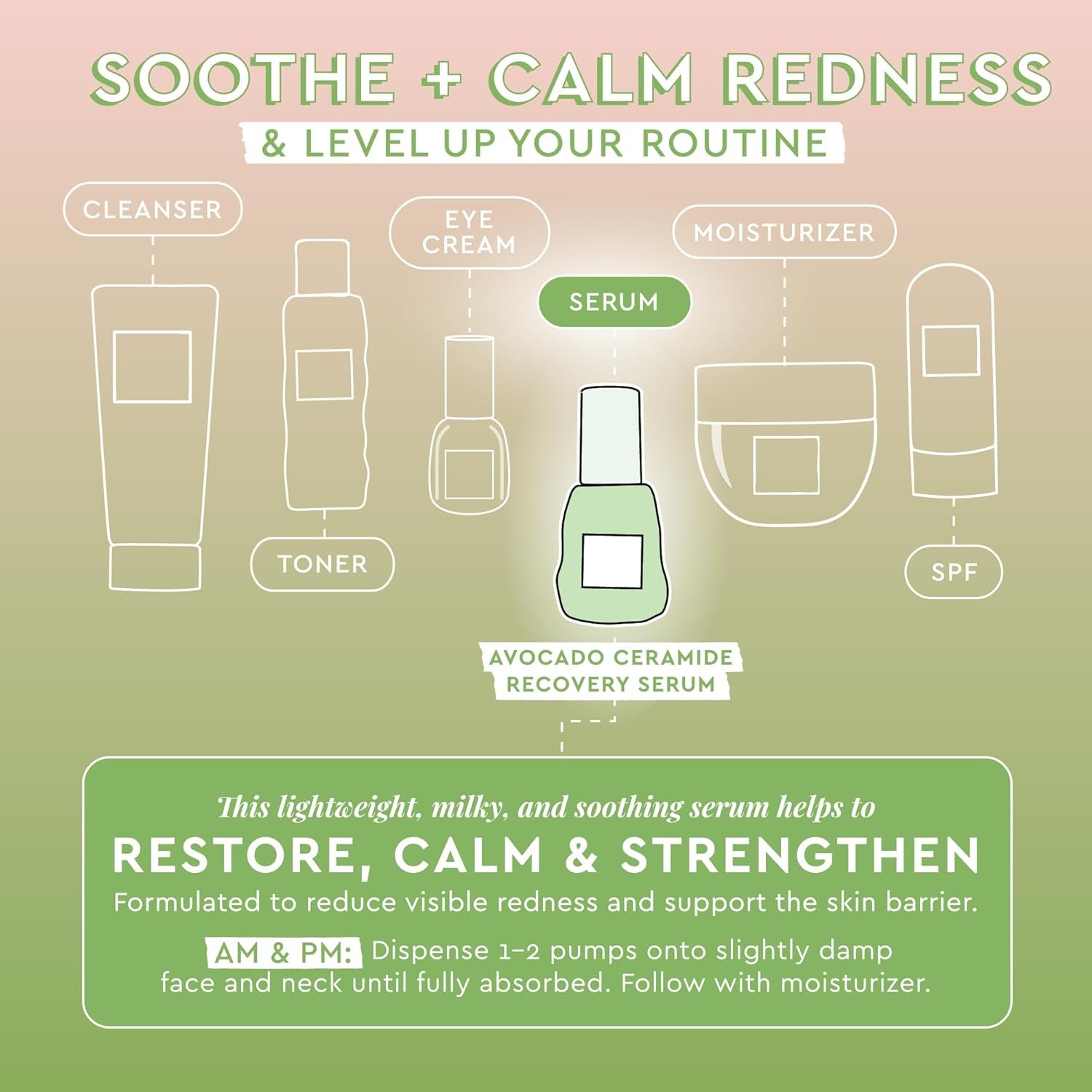 Vegan & Cruelty-free – The Avocado Ceramide Recovery face serum for dry skin & redness relief is free of parabens, mineral oil, sulfates, silicones, phthalates, synthetic dyes, fragrances, and drying alcohols.