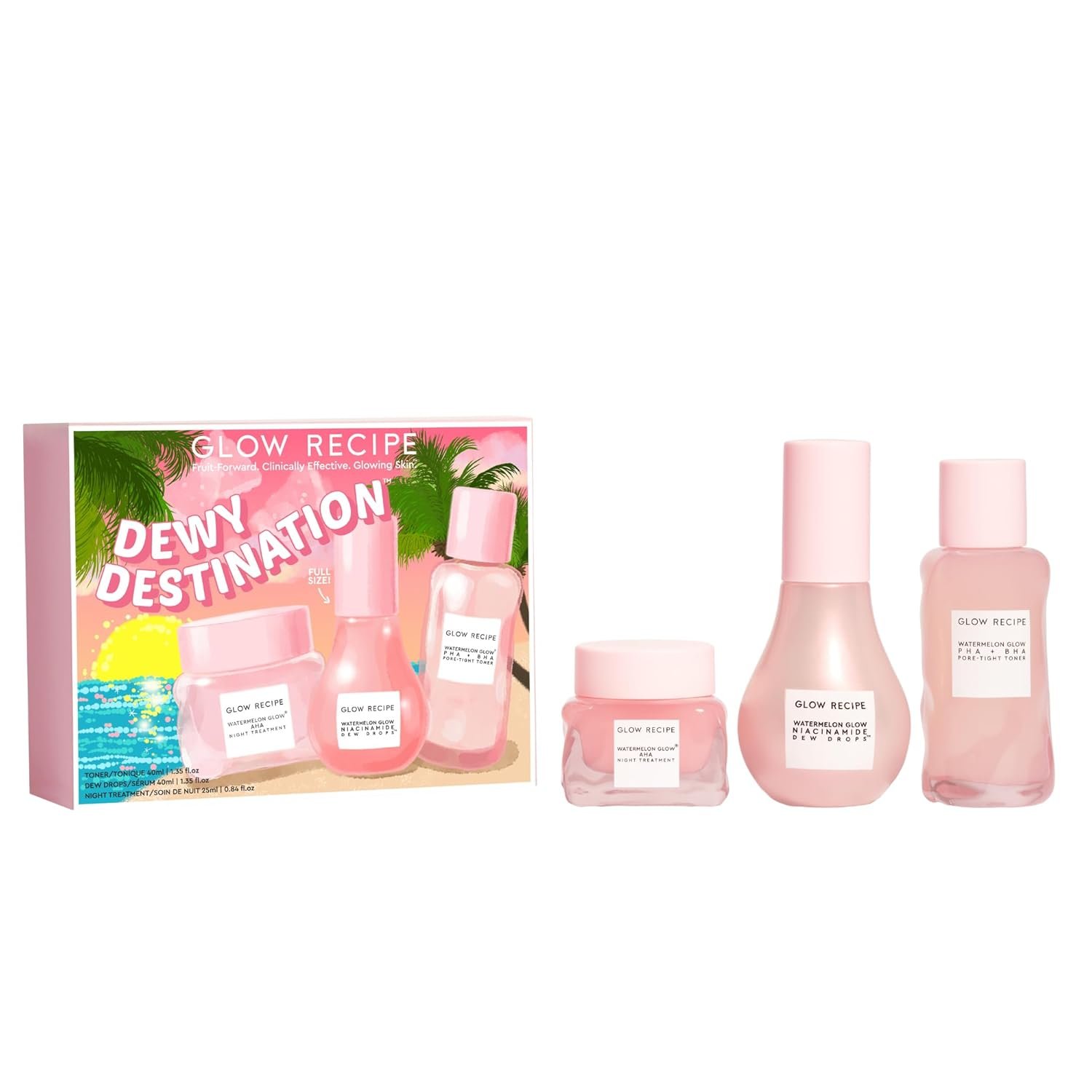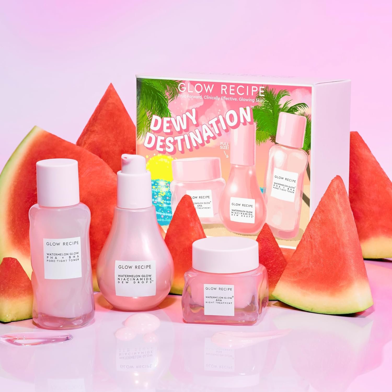Arrive at Your Dewy Destination – This clinically effective watermelon skincare trio includes Pore-Tight face toner to hydrate skin & refine pores, Dew Drops hydrating serum to instantly make skin glow while reducing the look of uneven skin tone over time, and AHA night treatment to gently exfoliate for brighter, smoother-looking skin.