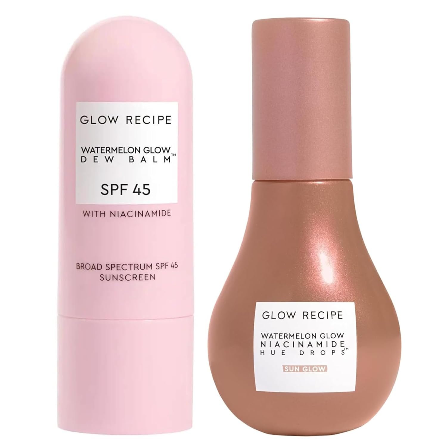 Glow Recipe Sun-Kissed Kit – Watermelon Glow SPF Dew Balm Sunscreen (0.58 oz) + Niacinamide Hue Drops Serum with Hyaluronic Acid (40 ml) – Protect from UVA Rays & Brighten Skin with a Warm Sun Glow