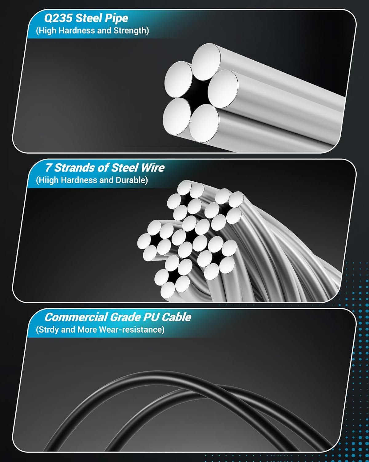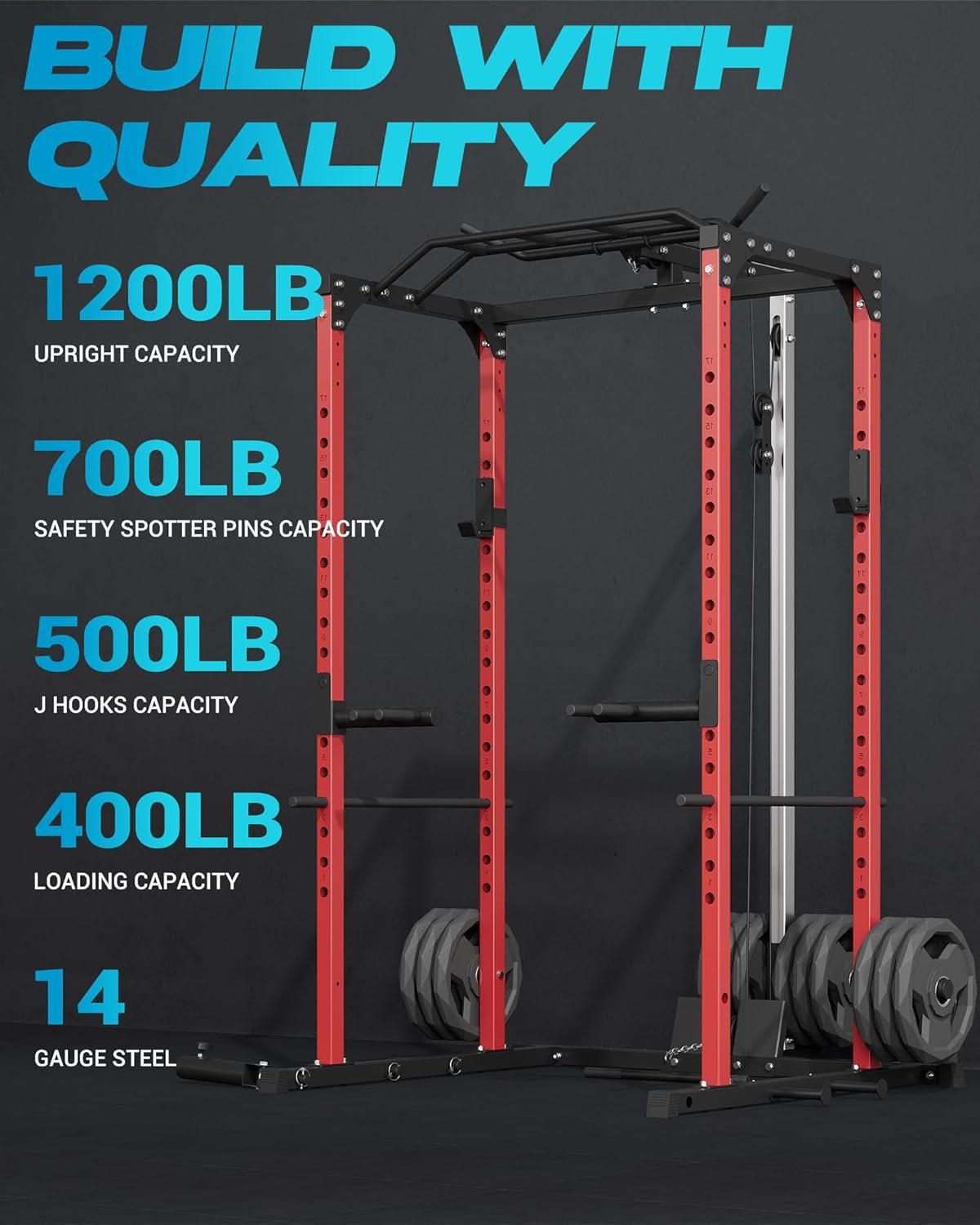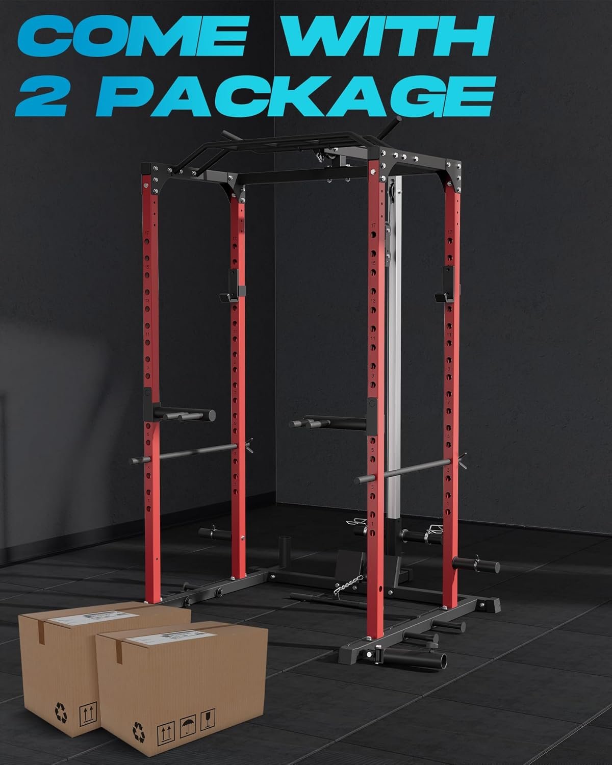 6-In-1 for HOME GYM: This power cage meets your diverse fitness needs by combining a power rack, lat pulldown, low row, chin-up, dip station, and core trainer. Enjoy the freedom to perform a wide range of exercises within a compact space.