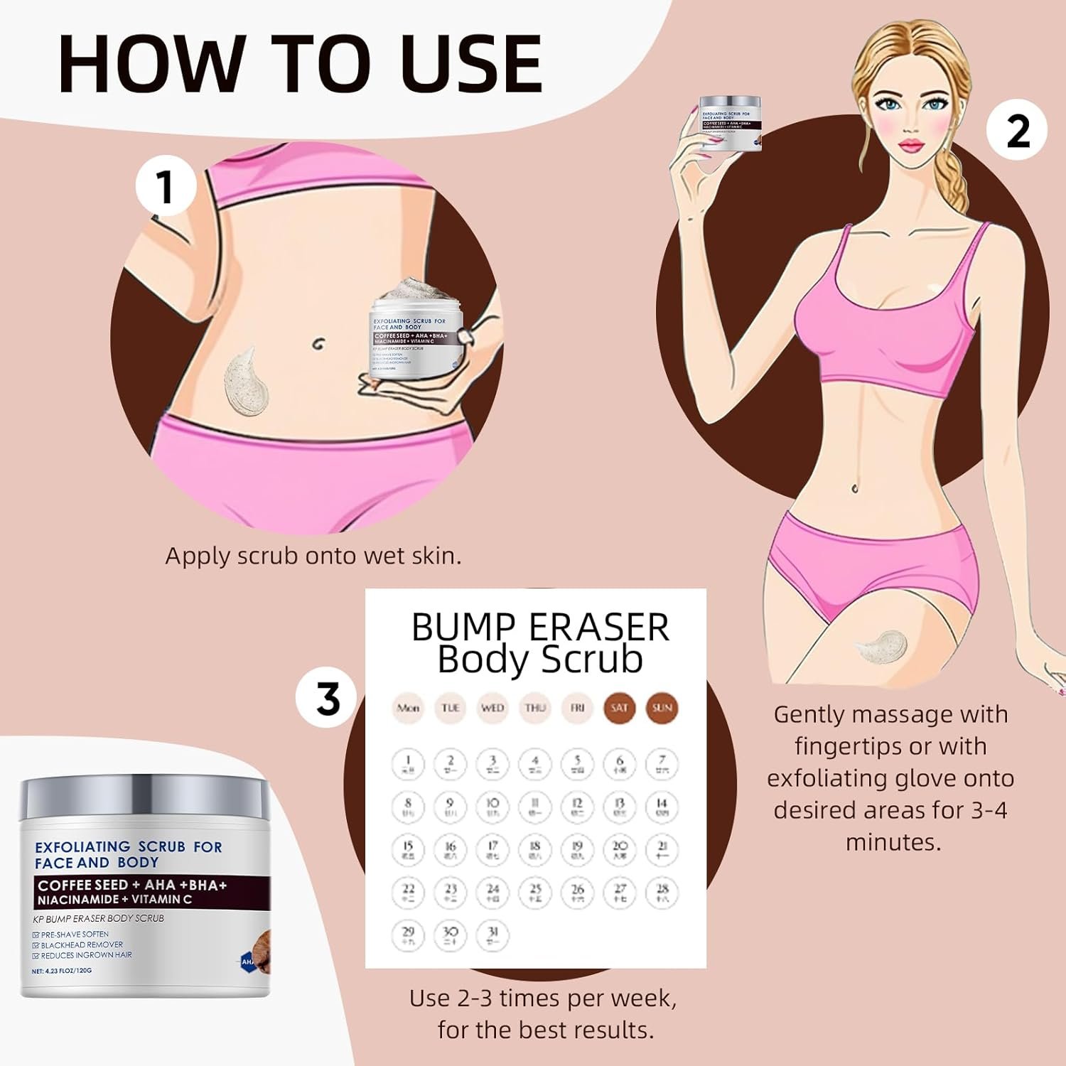 KP Body Scrub: Reduce skin bumps quickly Whether you call it rough skin , either way call it gone with this fast-acting KP body scrub that delivers the benefits of a chemical peel and microdermabrasion treatment in one.